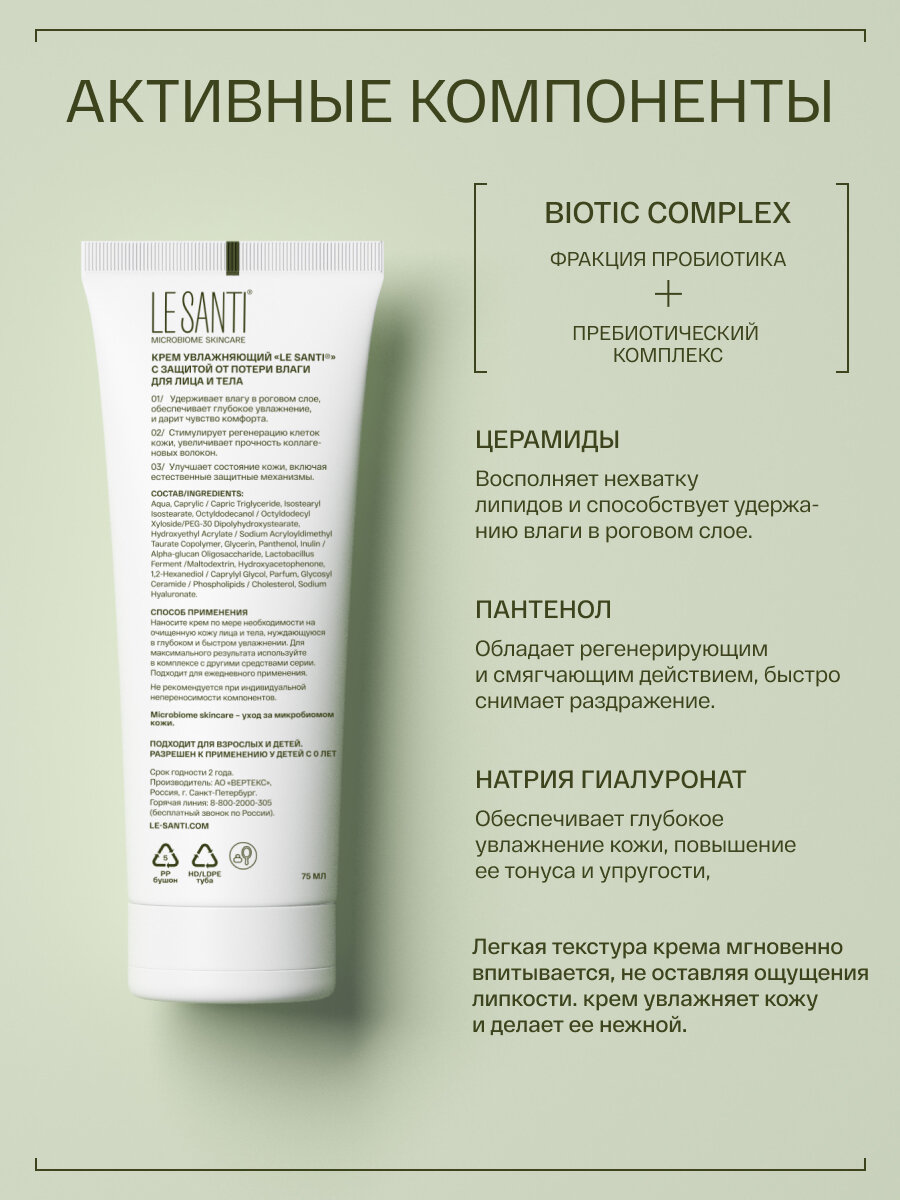 Крем Увлажняющий для лица и тела, с защитой от потери влаги для чувствительной и сухой кожи, 75 мл, LE SANTI интересное:
