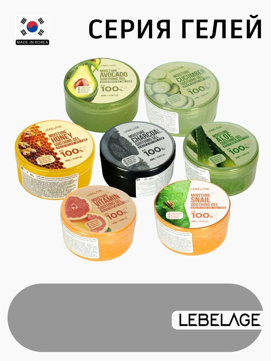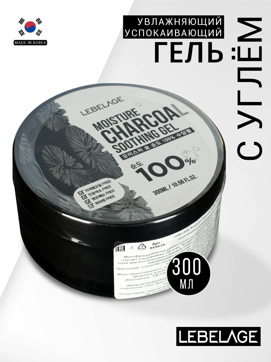 Купить LEBELAGE Увлажняющий успокаивающий гель с углем для ухода за кожей лица и тела, корейская косметика. 300мл