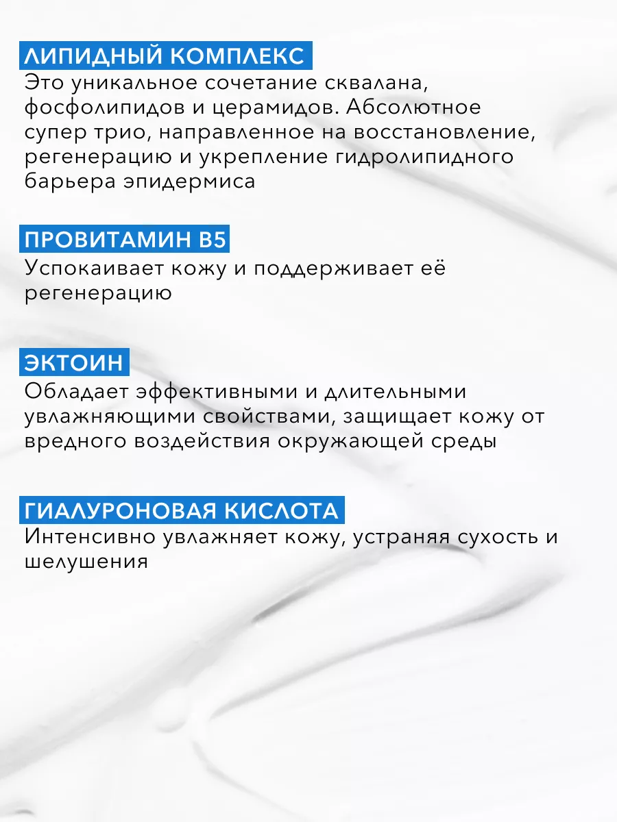 | Состав | Aqua (Water), Glycerin, Cetearyl Alcohol, Polyglyceryl-3 Rice Branate, Propanediol, Squalane, Cetearyl Ethylhexanoate, Isononyl Isononanoate, Persea Gratissima (Avocado) Oil, Decyl Oleate, Panthenol, Polyglyceryl-3 PCA, Ectoin, Sodium Hyaluronate, Phosphatidylserine, Glycolipids, Beta-Sitosterol, Phospholipids, Ceramide NP, Hydrogenated Vegetable Glycerides Citrate, Ceramide AP, Phytosphingosine, Cholesterol, Ceramide EOP, Dimethicone, Ethylhexylglycerin, Glycine Soja (Soybean) Oil, Caprylic/Capric Triglyceride, Squalene, Cetearyl Glucoside, Sodium Lauroyl Lactylate, Xanthan Gum, Disodium EDTA, Ascorbyl Palmitate, Tocopherol, Citric Acid, Carbomer, Phenoxyethanol, Methylparaben. |