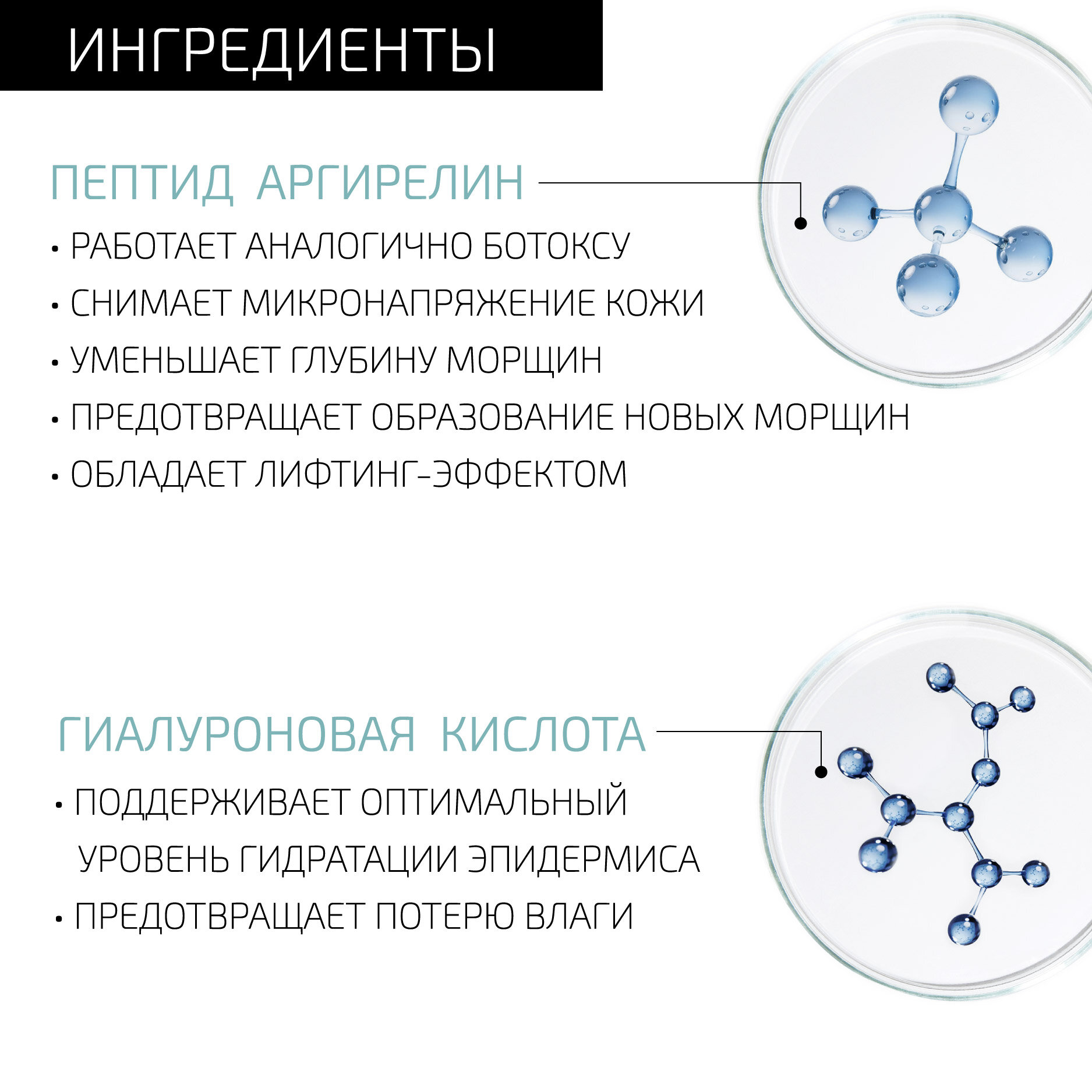 | Активный ингредиент | гиалуроновая кислота / пептиды |