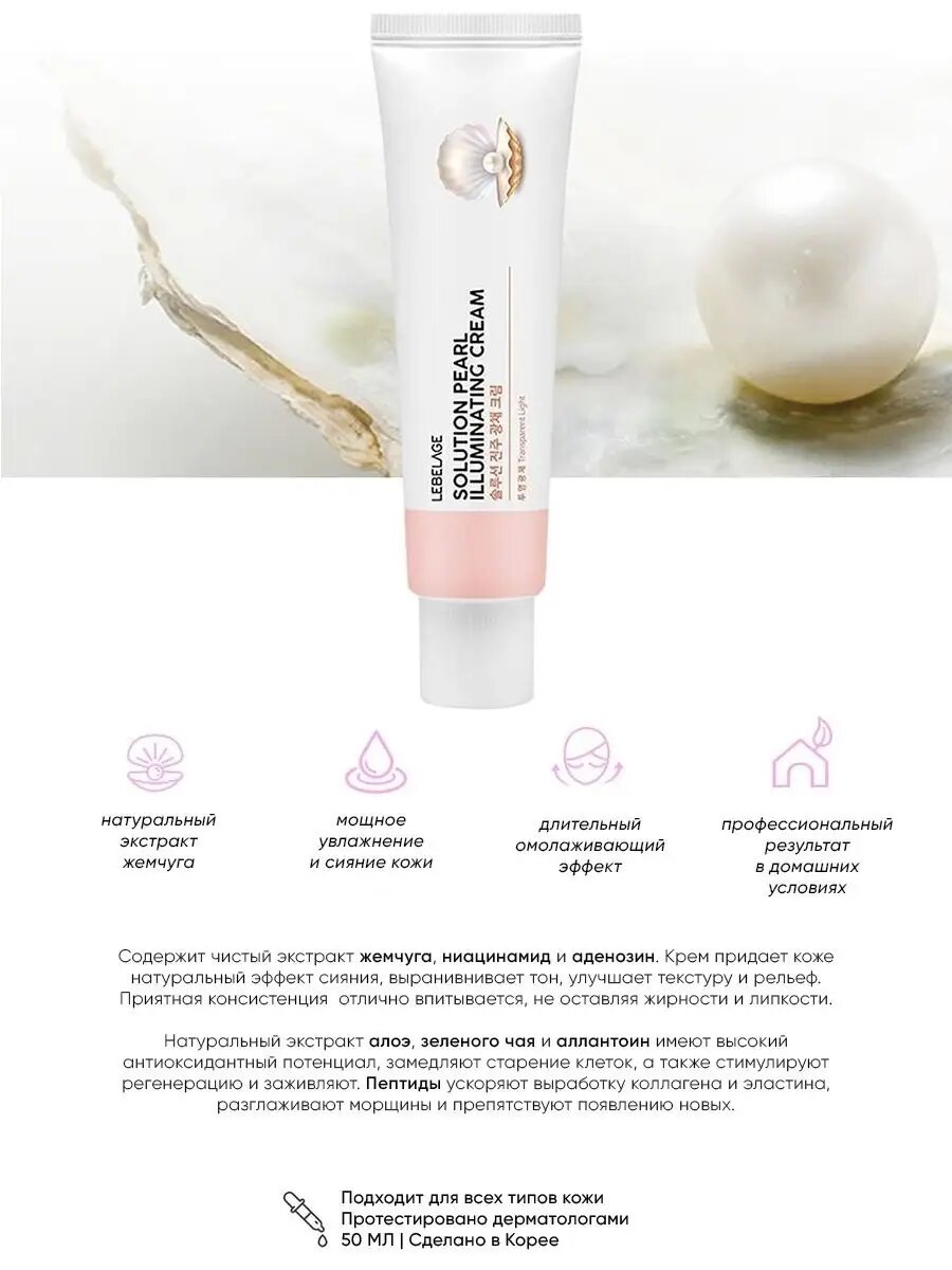 СохранитьLebelage Крем для лица с пептидами и экстрактом жемчуга / Solution Pearl Illuminating Cream, 50 мл интересное: