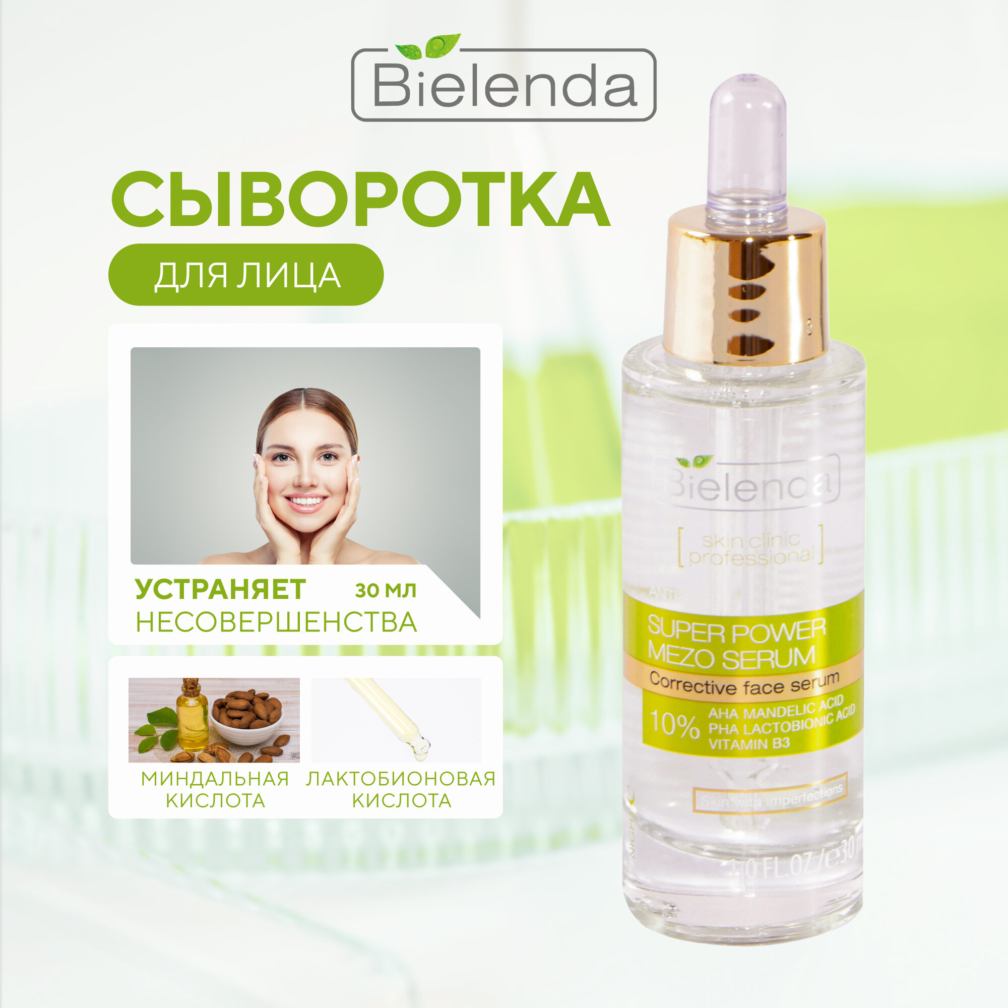 Cыворотка для лица BIELENDA SKIN CLINIC PROFESSIONAL Миндальная и Лактобионовая кислота, 30мл
