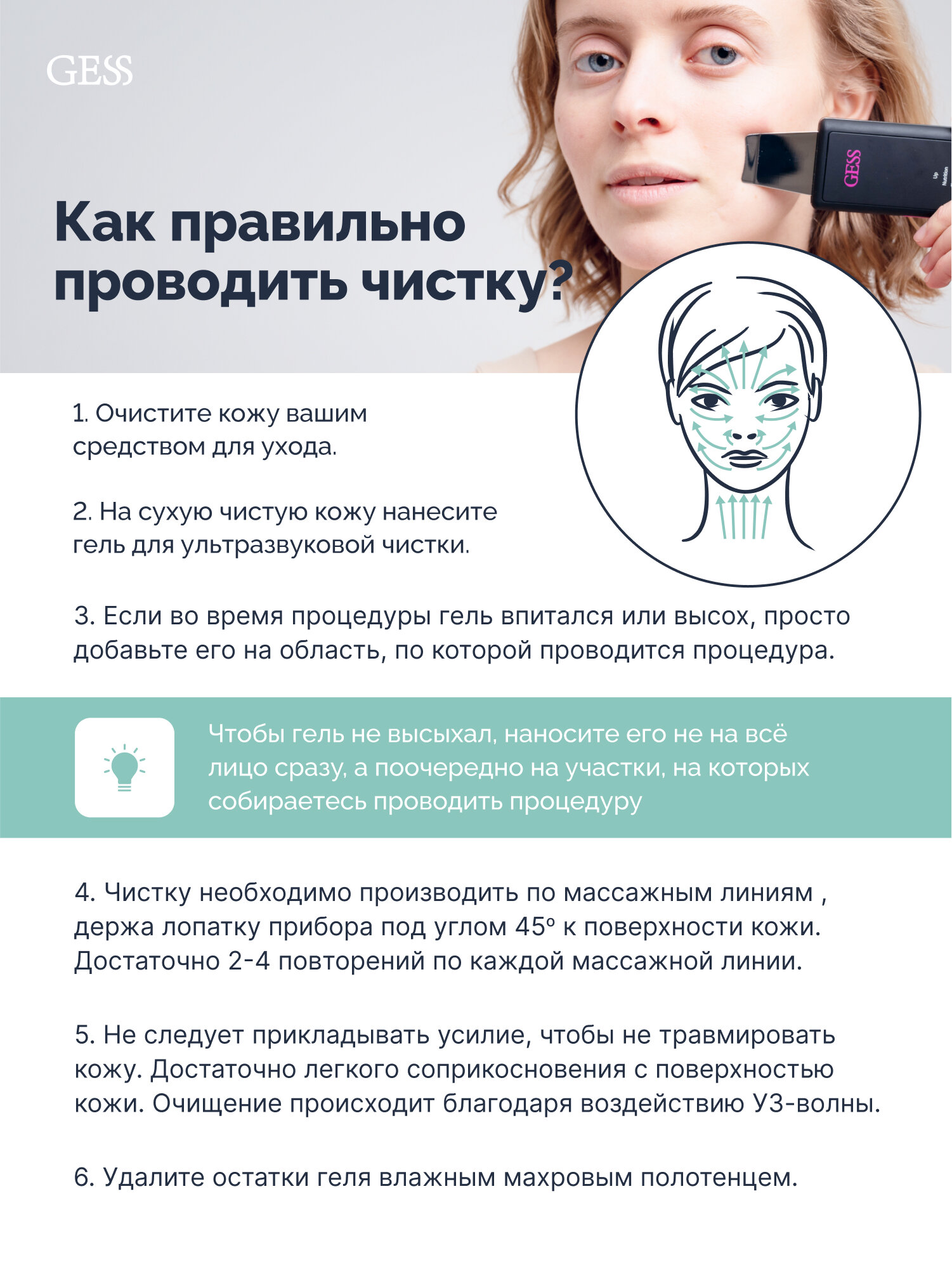 Гель для ультразвуковой чистки лица GESS Cleaning Gel для всех типов кожи, очищающий гель интересное: