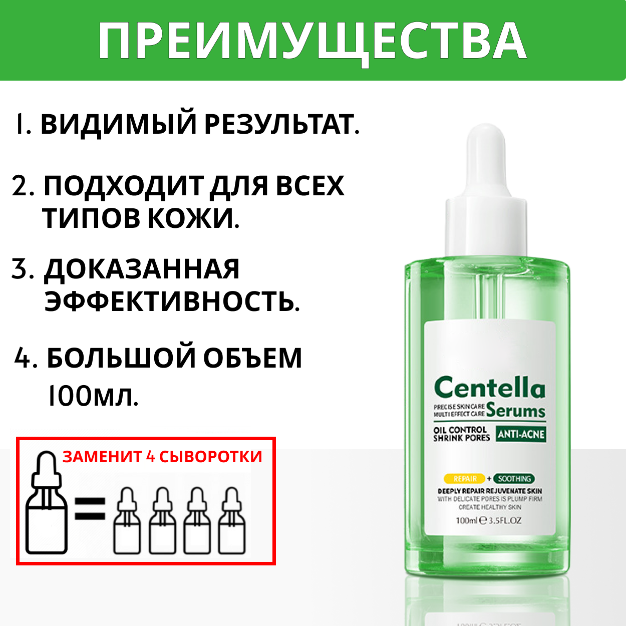 Сыворотка для лица против прыщeй и акне. Экстракт центеллы. 100мл интересное: