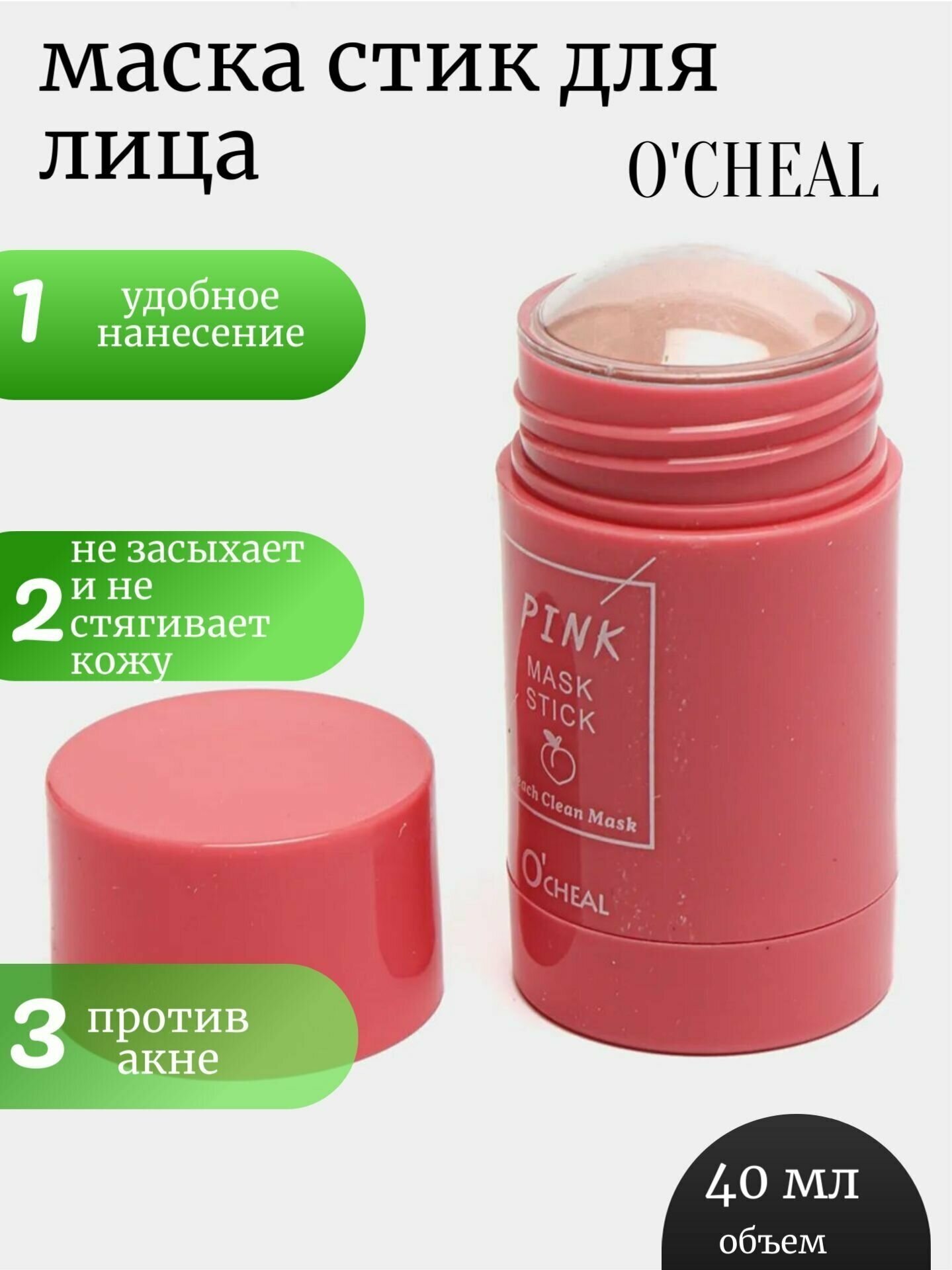 Глиняная маска стик для глубокого очищения и сужения пор, с экстрактом персика, от черных точек, прыщей и акне / Pink mask stick интересное: