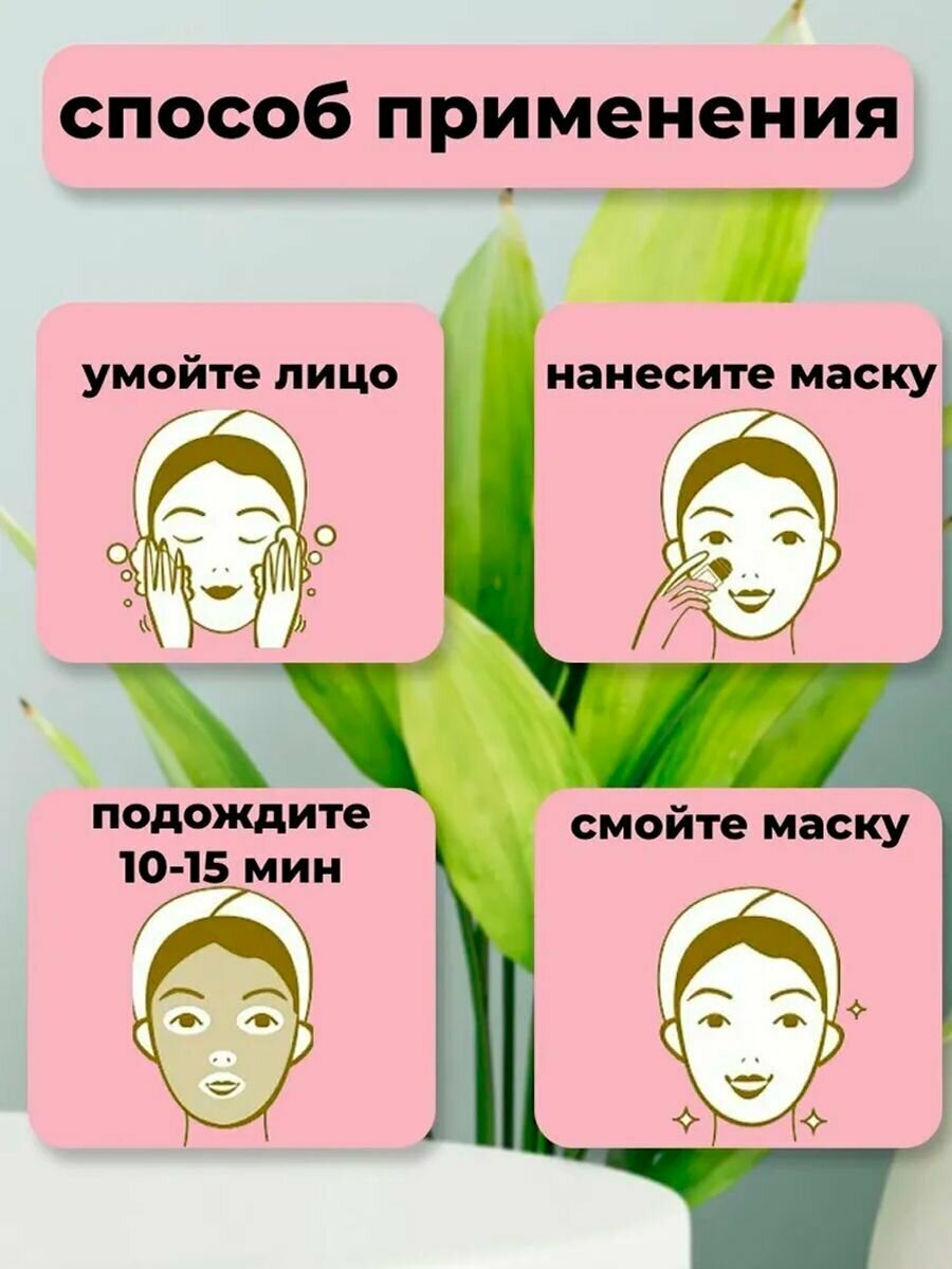 | Способ применения | Обильно нанесите маску на чистое сухое лицо, оставьте на 10 минут, смойте водой. Избегайте попадания в глаза. При попадании в глаза промойте их водой. |