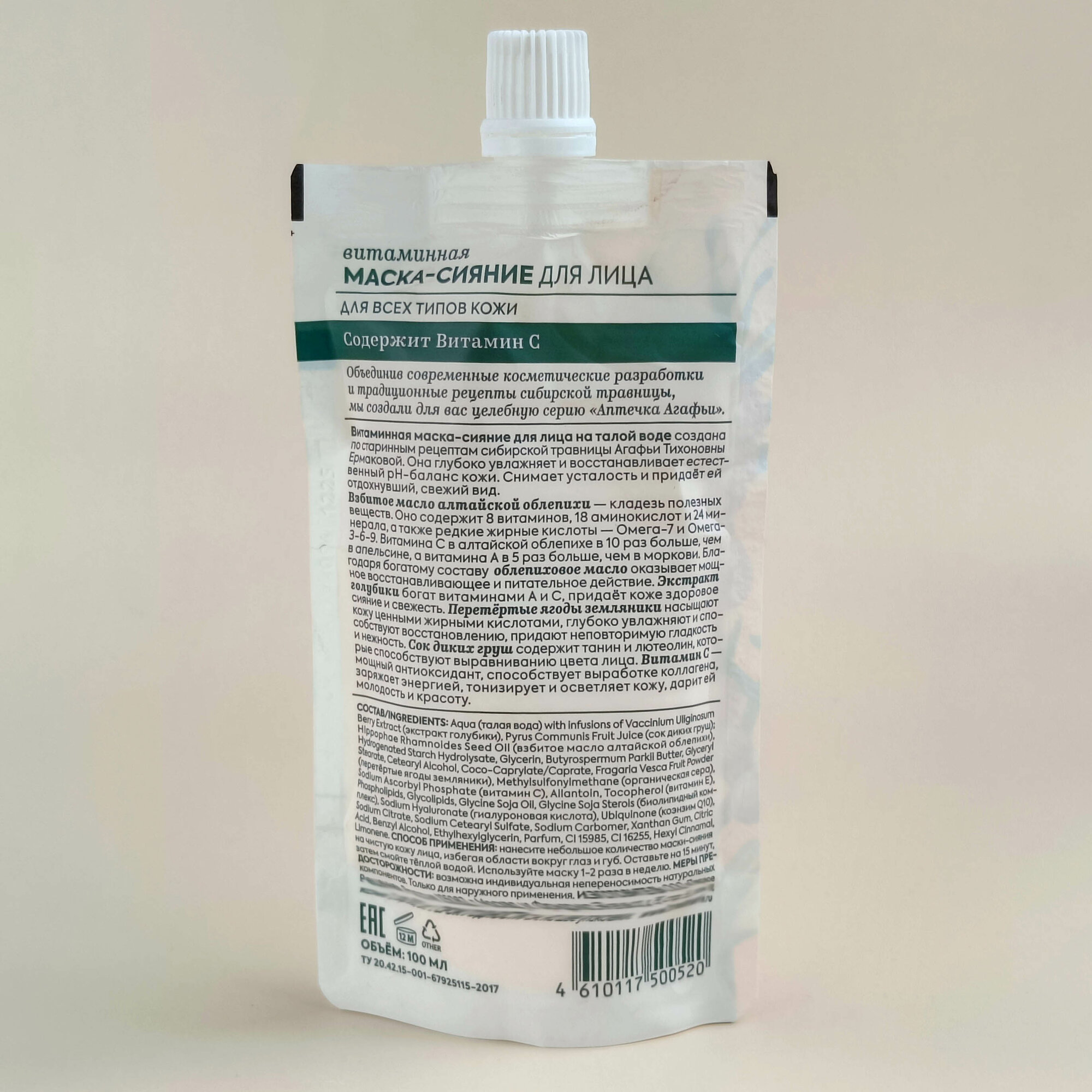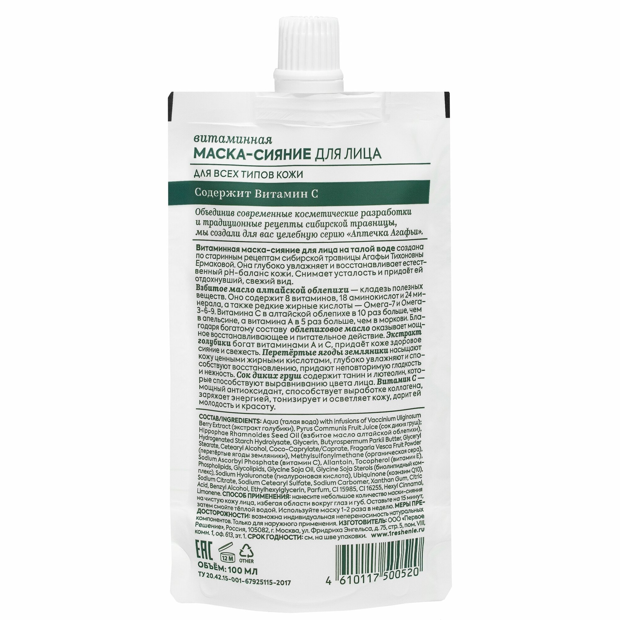 Купить Рецепты бабушки Агафьи Аптечка Агафьи Витаминная маска-сияние для лица для всех типов кожи, 100 мл