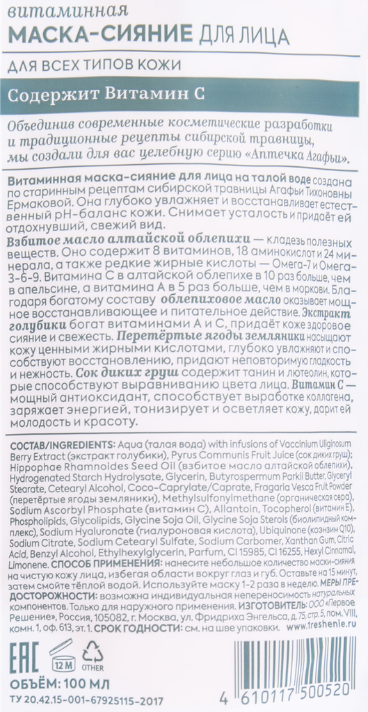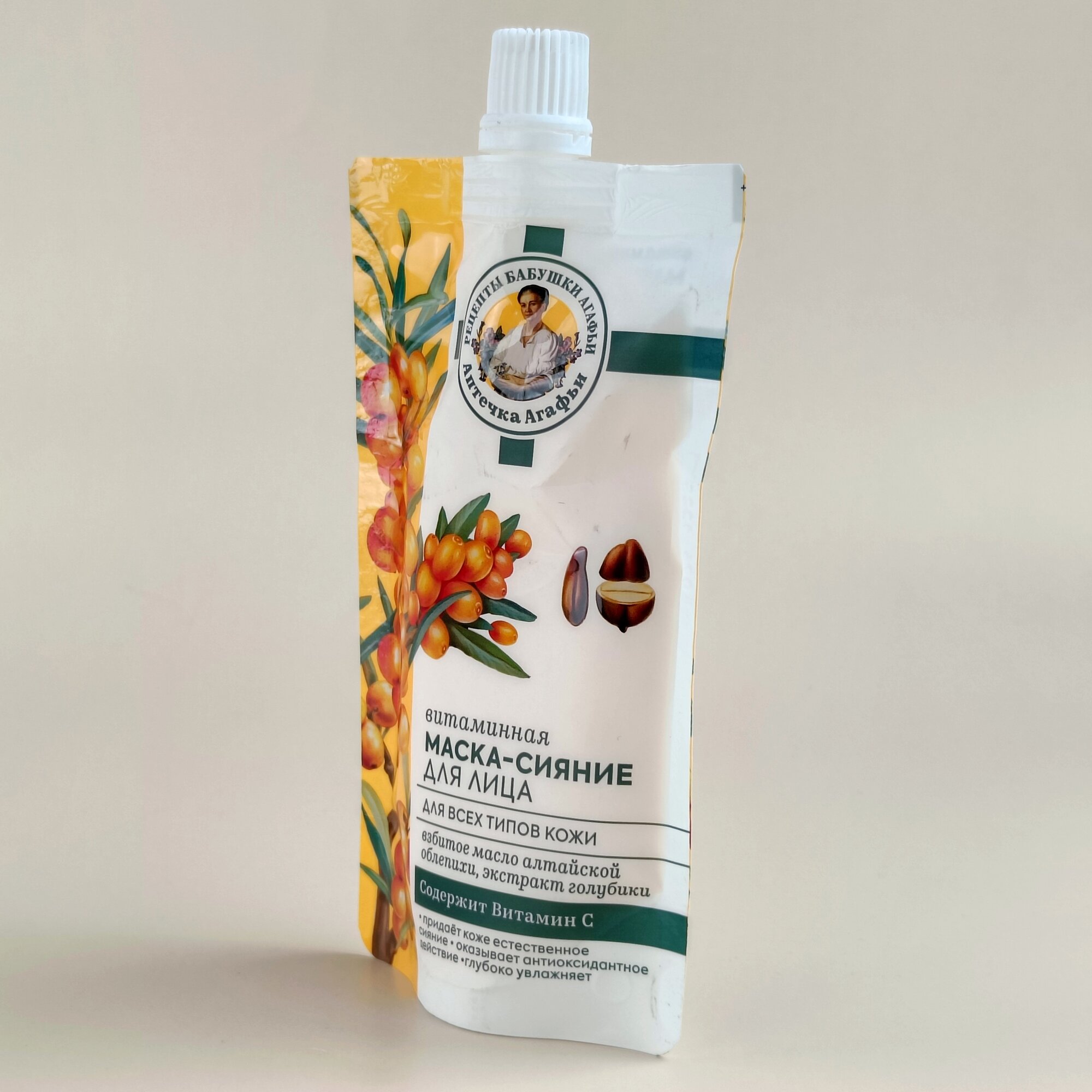 Рецепты бабушки Агафьи Аптечка Агафьи Витаминная маска-сияние для лица для всех типов кожи, 100 мл интересное: