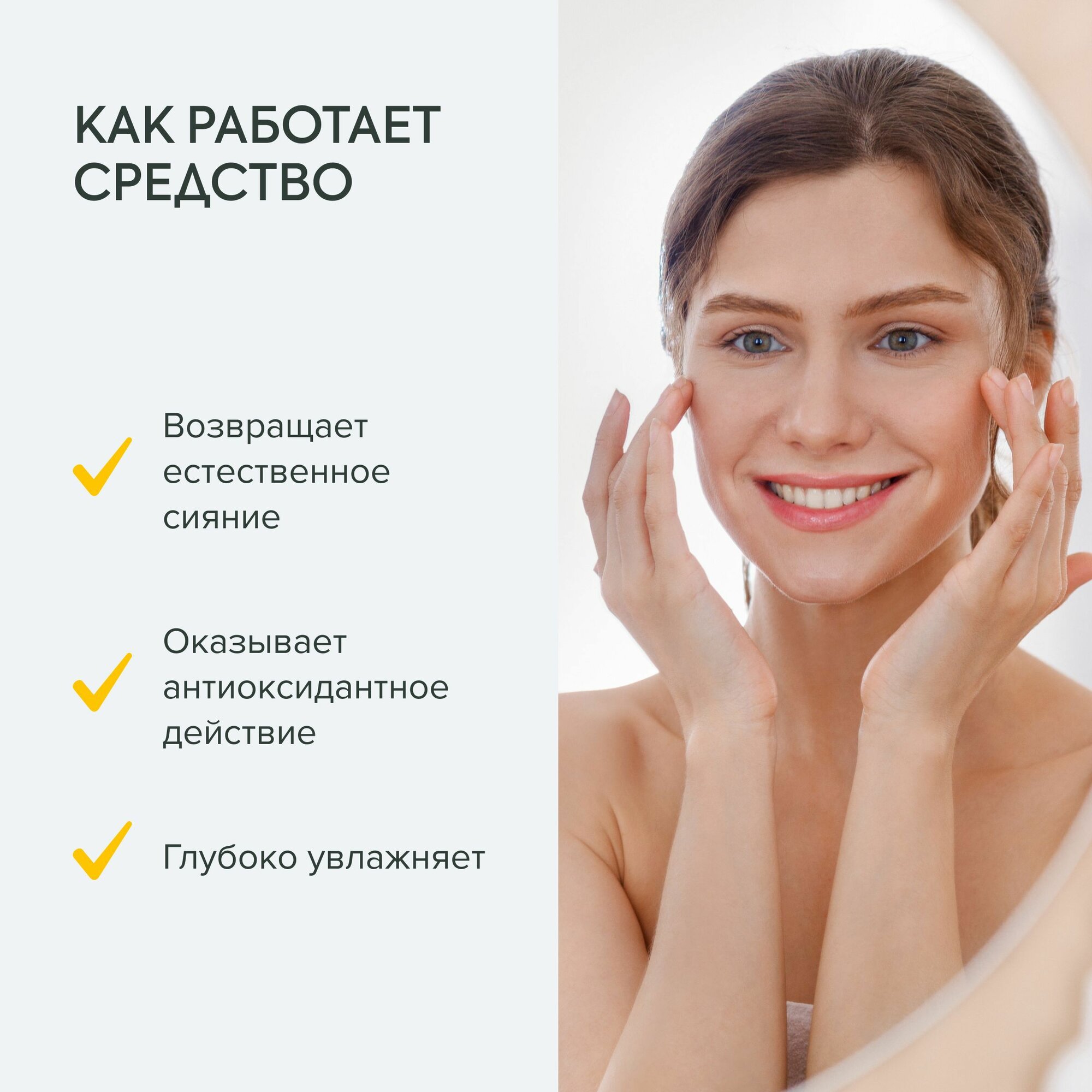 | Способ применения | нанесите небольшое количество маски-сияния на чистую кожу лица избегая области вокруг глаз и губ. Оставьте на 15 минут, затем смойте тёплой водой. Используйте маску 1-2 раза в неделю |