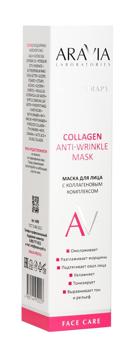 ARAVIA LABORATORIES Маска для лица с коллагеновым комплексом Collagen Anti-wrinkle Mask, 100 мл интересное: