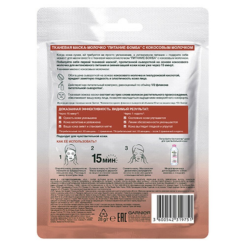 Купить Garnier Тканевая маска-молочко с кокосовым молочком "Питание-Бомба", 32 г