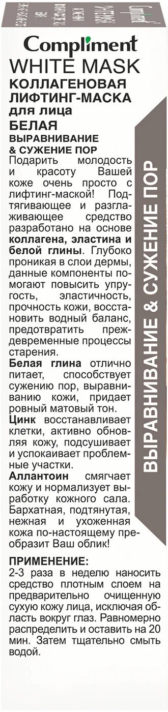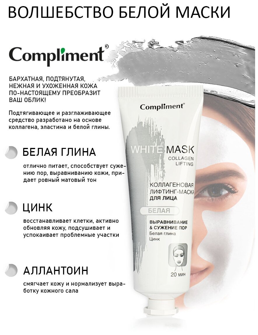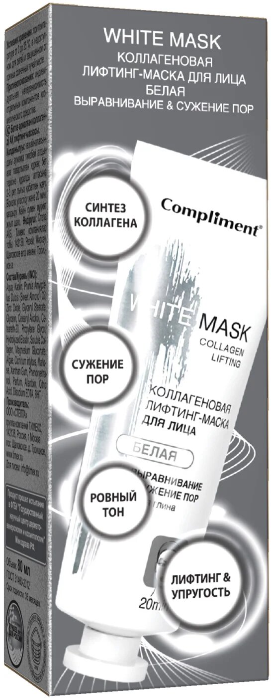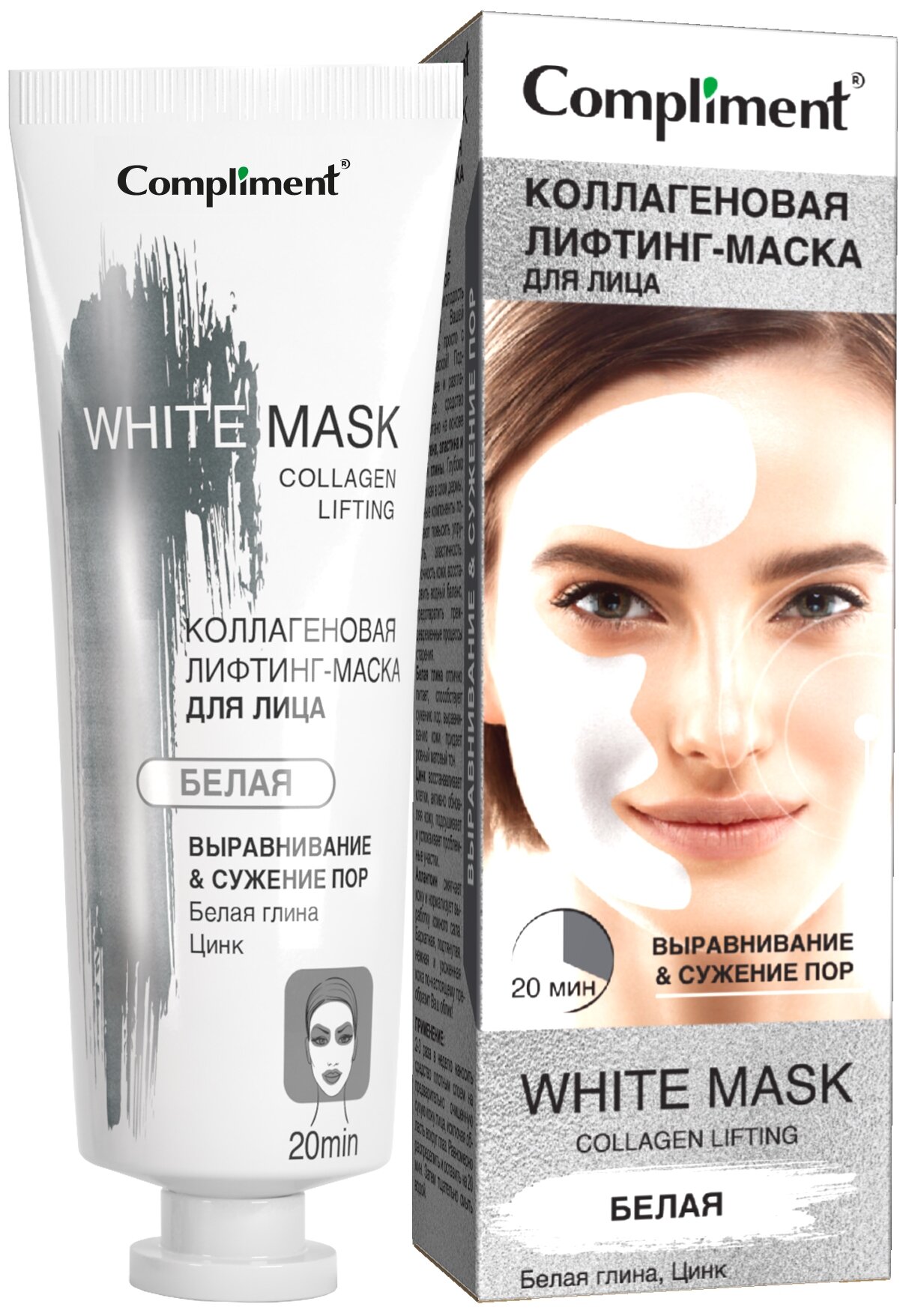 Compliment Лифтинг-маска для лица коллагеновая БЕЛАЯ Выравнивание&Сужение пор WHITE MASK, 80мл