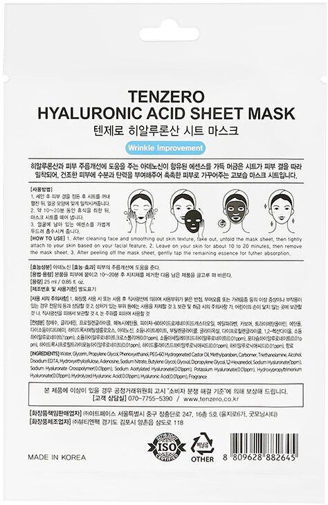 TENZERO Тканевая маска с гиалуроновой кислотой, 25 мл интересное: