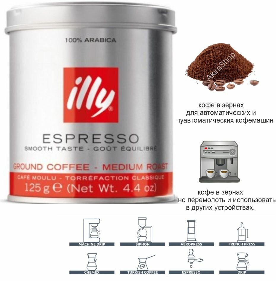 Купить Кофе illy молотый, средней обжарки, банка 125 г