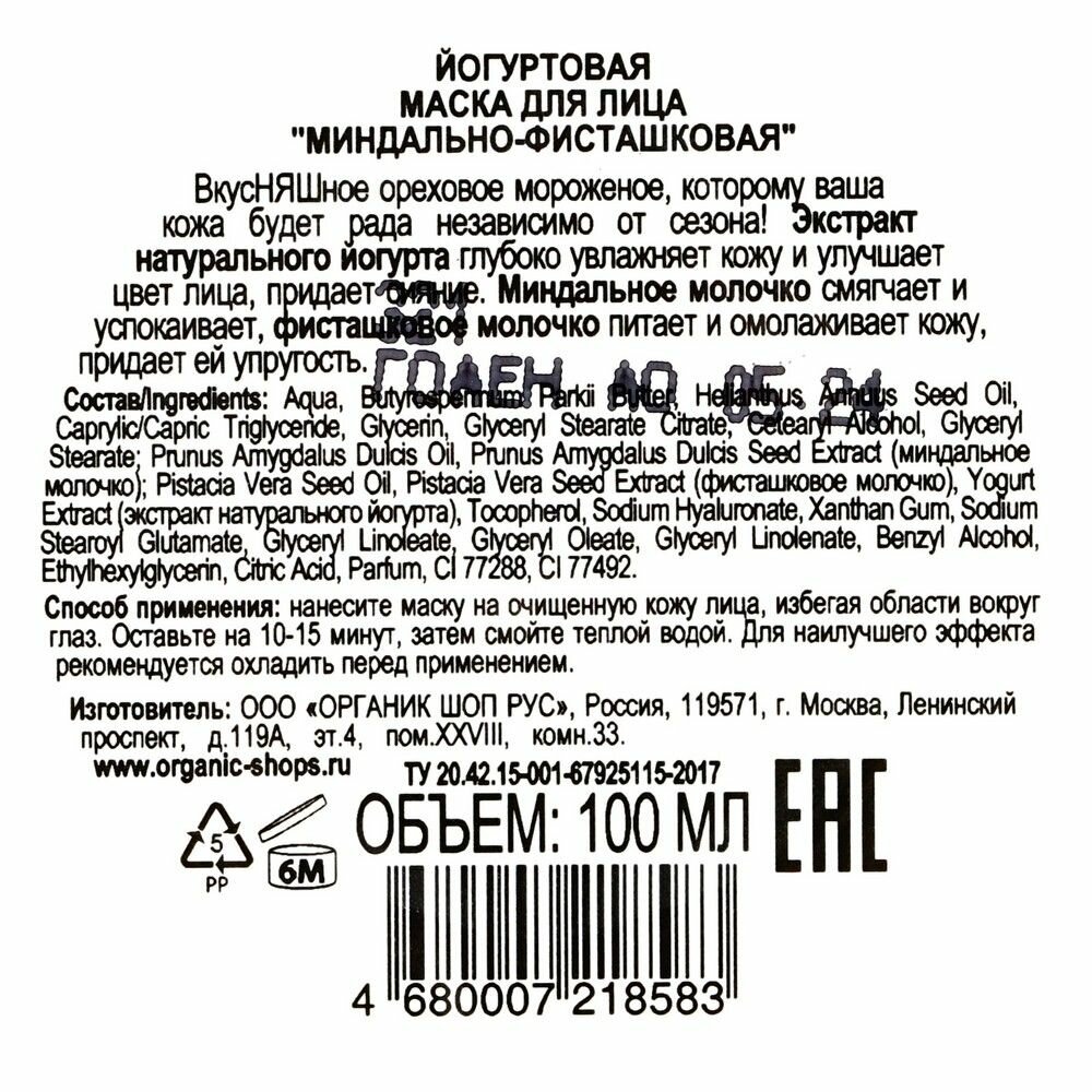 Йогуртовая маска Organic Kitchen для лица Миндально-фисташковая, 100 мл