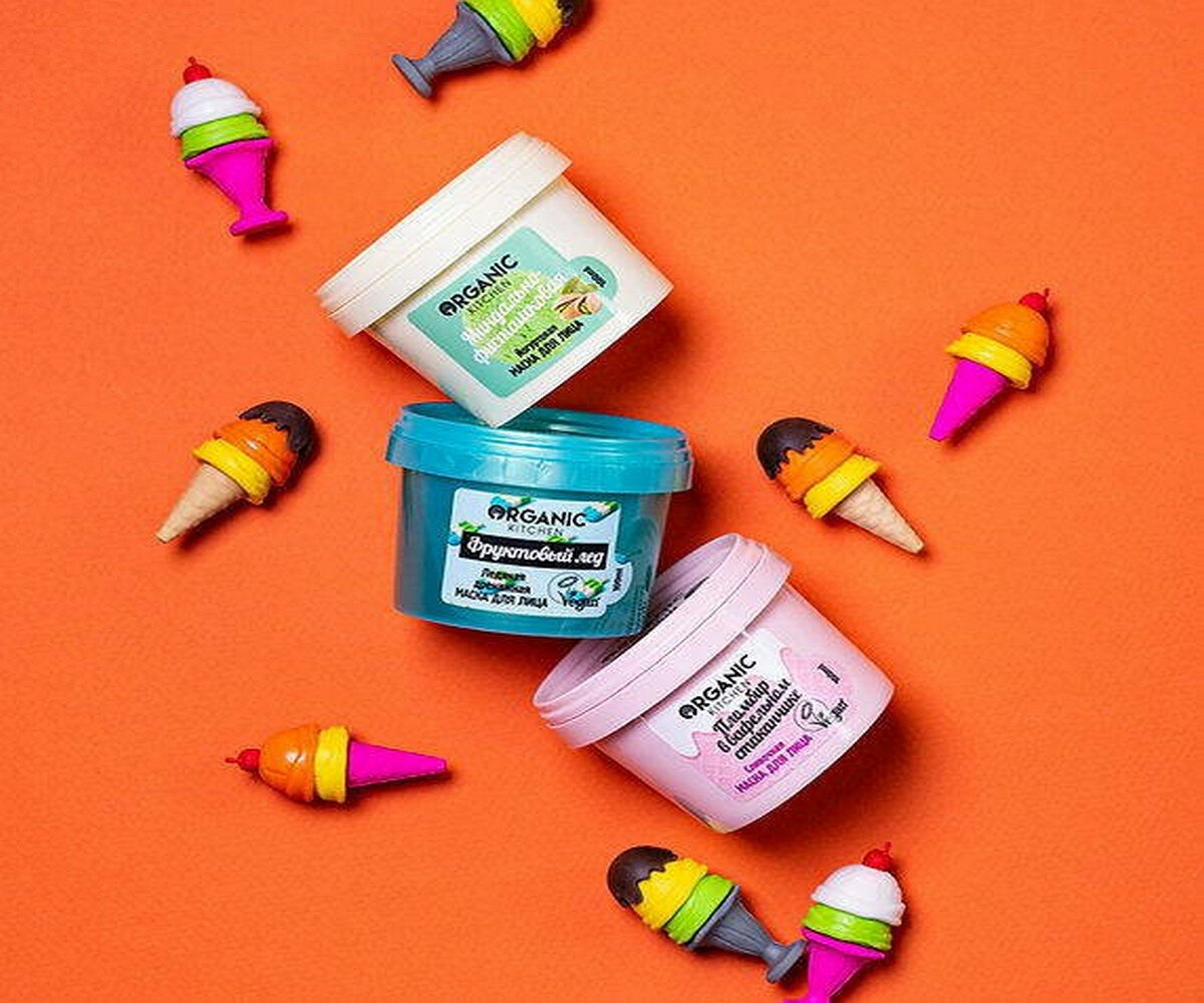 Набор сливочная маска Organic Kitchen для лица Пломбир в вафельном стаканчике, 3 штуки х 100 мл