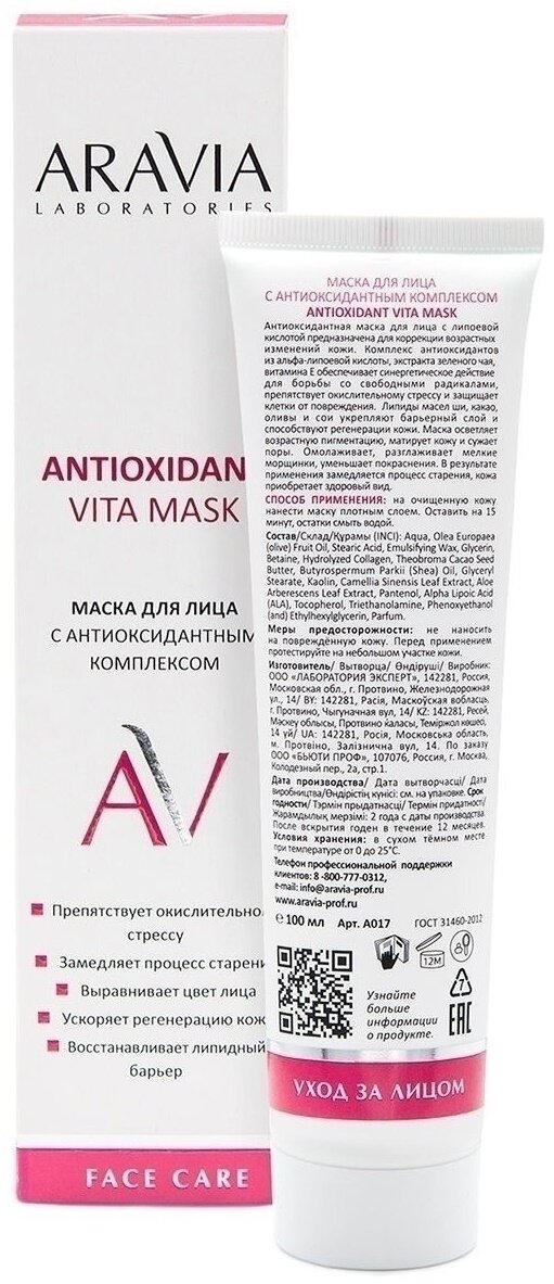 ARAVIA Маска для лица с антиоксидантным комплексом Antioxidant Vita Mask, 100 мл интересное: