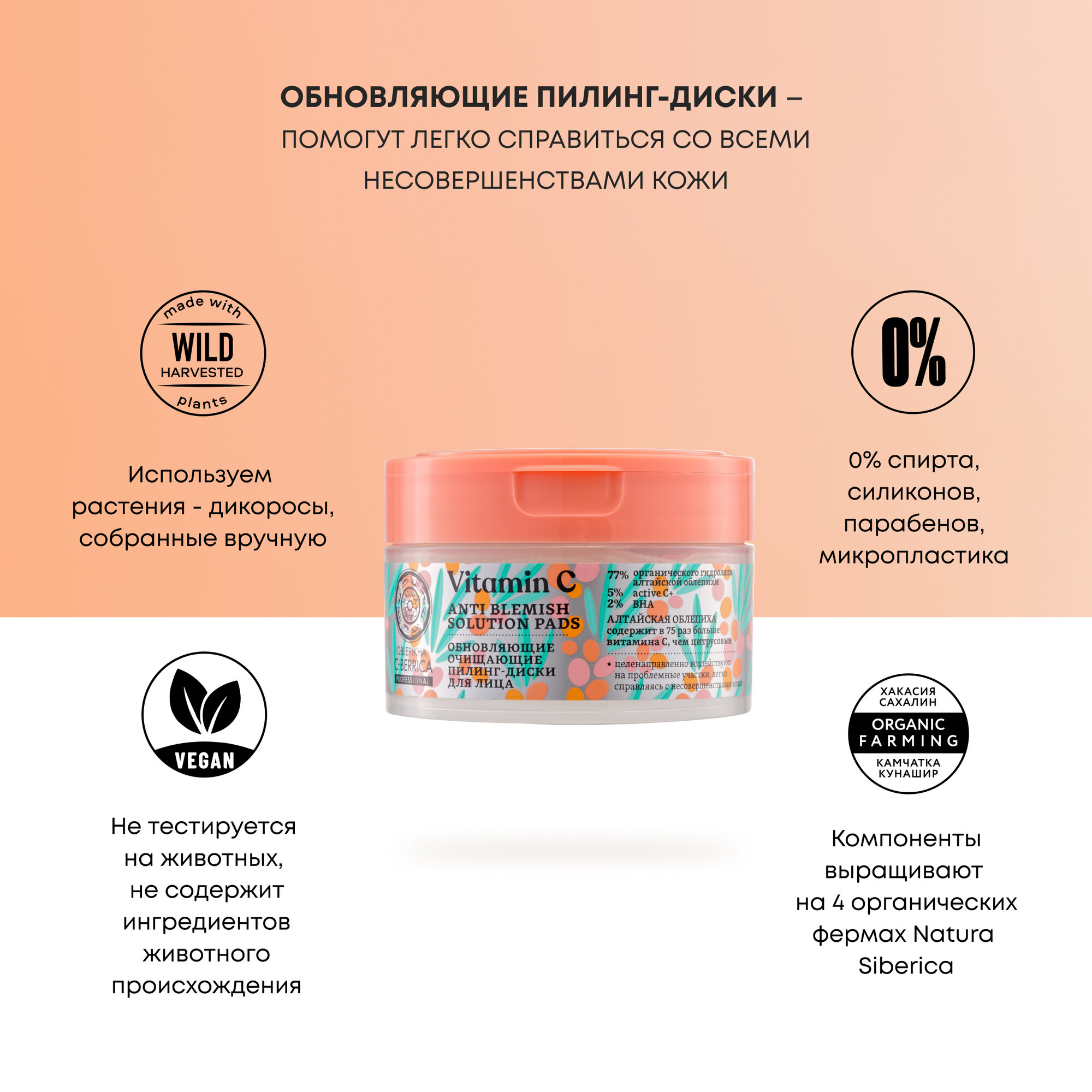 Купить Очищающие пилинг-диски Natura Siberica Oblepikha C-BERRICA для лица обновляющие, 20 шт