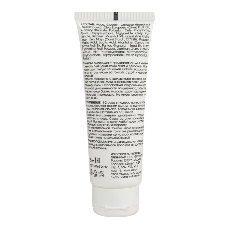 Купить KORA Гоммаж-эксфолиант с энзимами папайи и граната для лица и декольте, 75 мл
