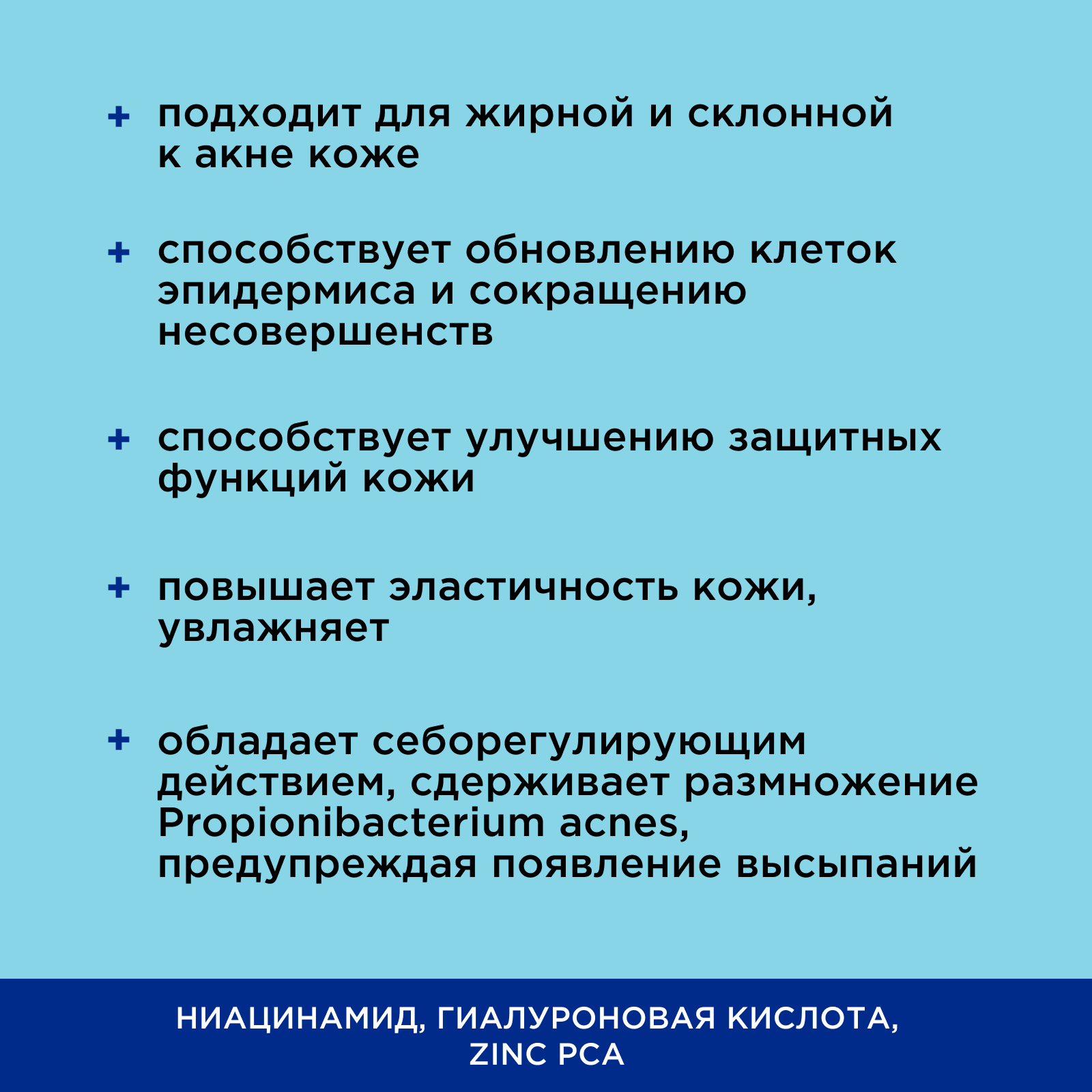 | Активный ингредиент | гиалуроновая кислота / цинк |