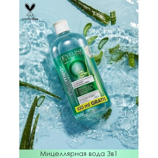 Eveline Cosmetics Facemed+ мицеллярная вода освежающе-успокаивающая с алоэ вера 3 в 1, 500 мл