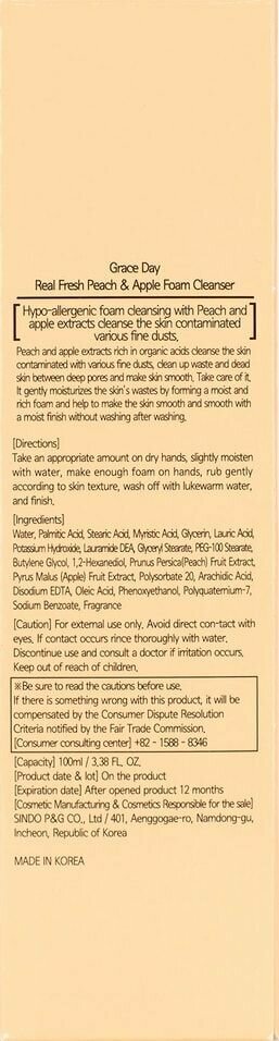 Grace Day пенка для умывания с экстрактами персика и яблока