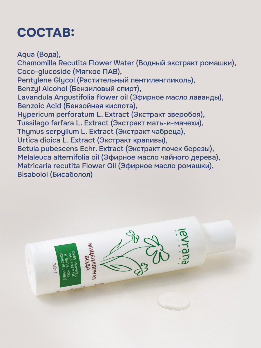 Мицеллярная вода для снятия макияжа очищающая Ромашка, Levrana, 200 мл интересное: