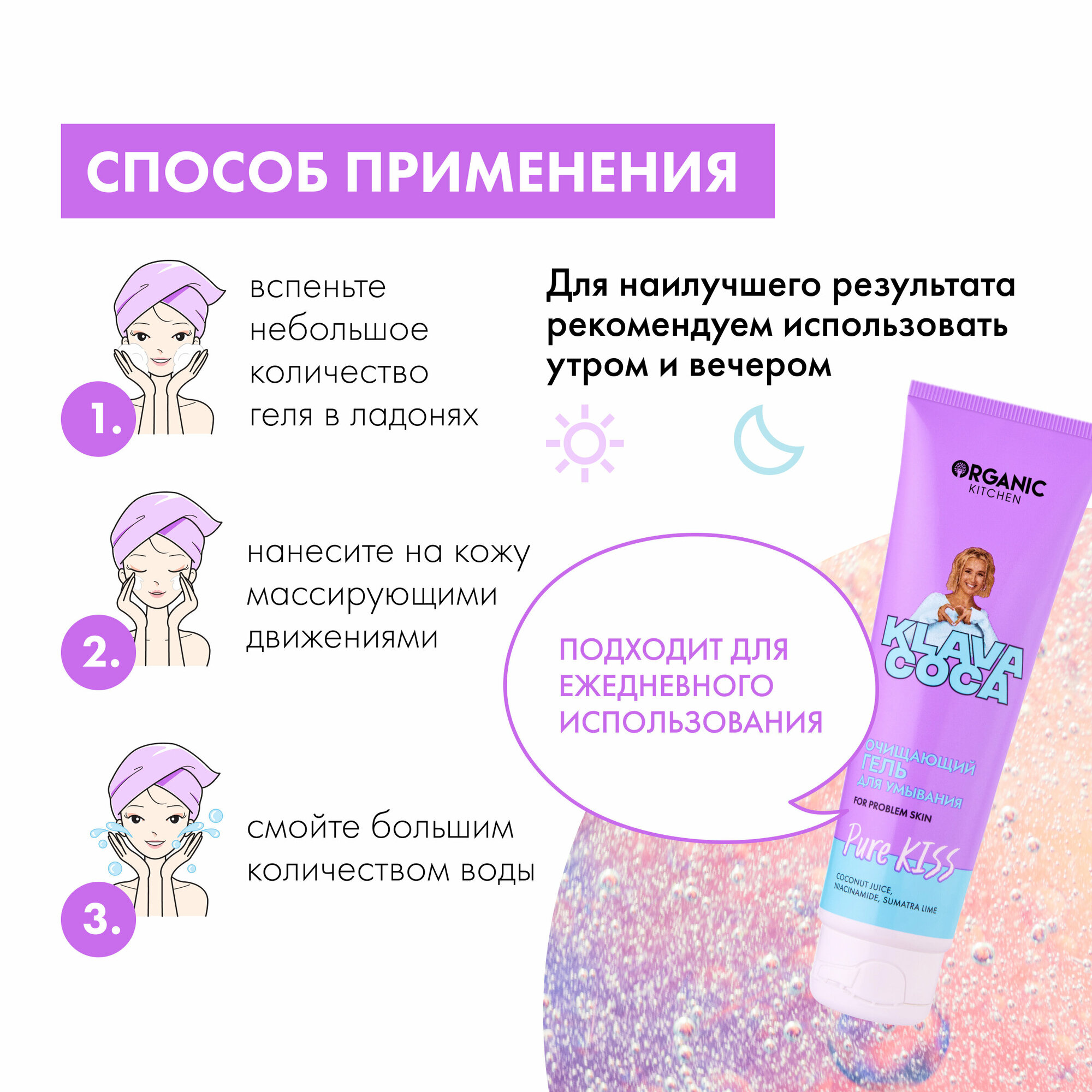 Очищающий гель Organic Kitchen Klava Coca (Клава Кока) для умывания Pure Kiss от прыщей с ниацинамидом, 100 мл