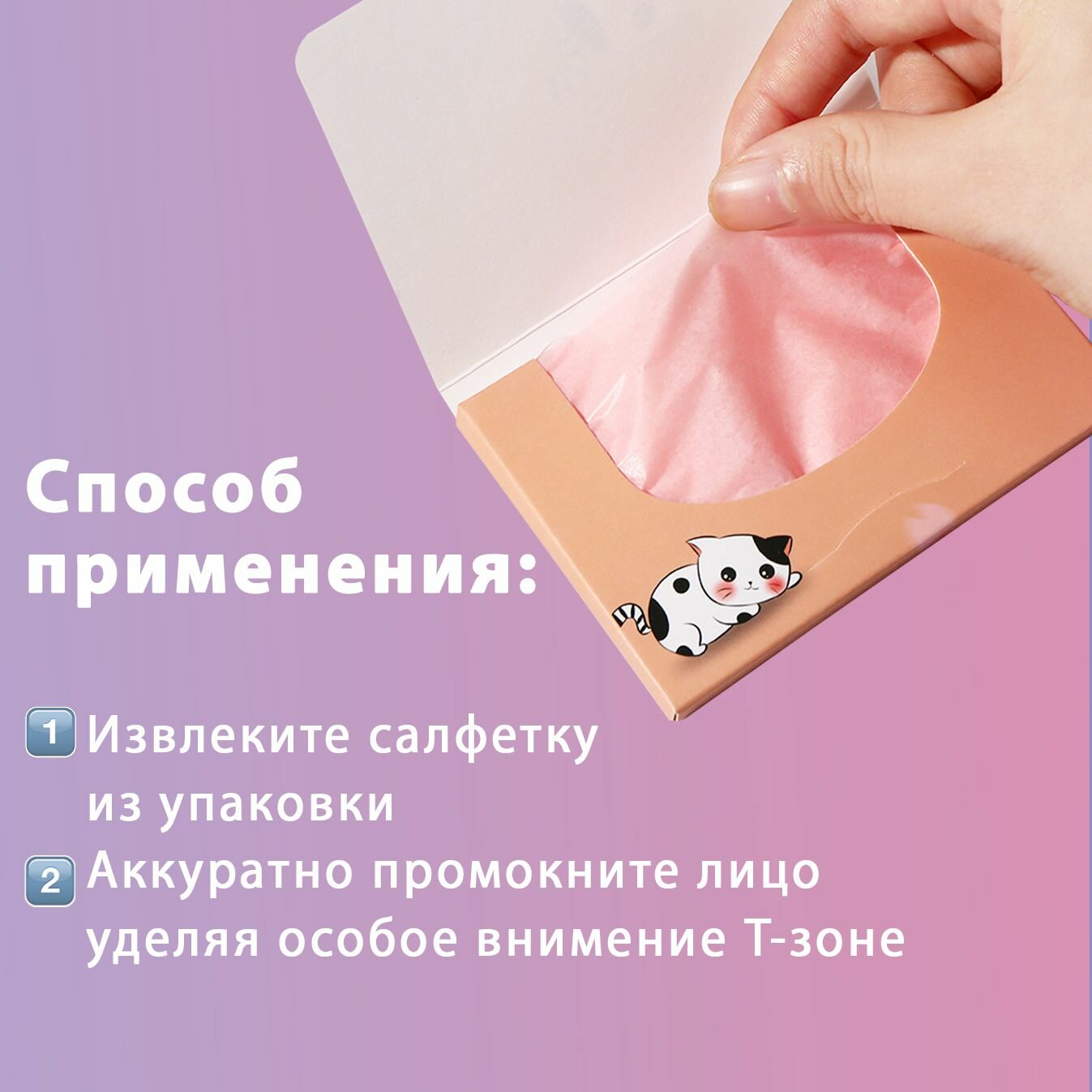 | Способ применения | Открыть упаковку, достать лист, аккуратно промокнуть лицо. Каждый раз использовать новую салфетку. |