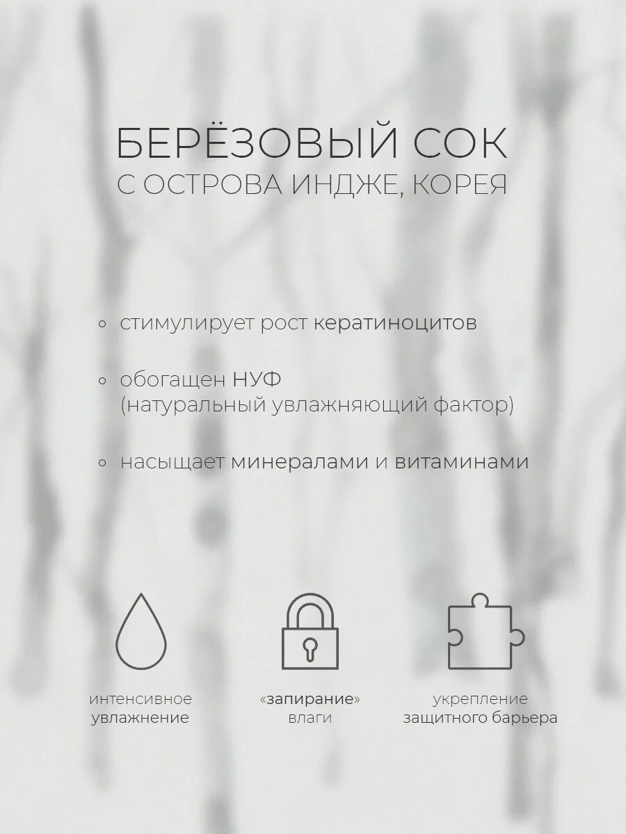 | Активные ингредиенты | аденозин, аллантоин, витамин Е, гиалуроновая кислота, глицерин, комплекс витаминов, ниацинамид, пантенол, пептиды, сок алоэ, цинк, экстракт ромашки |