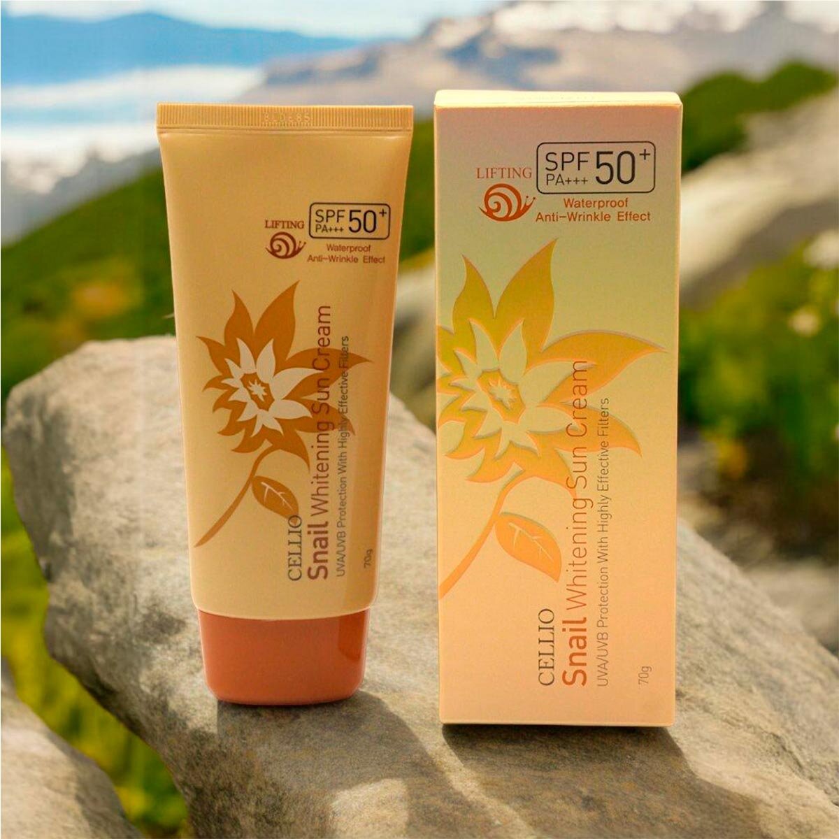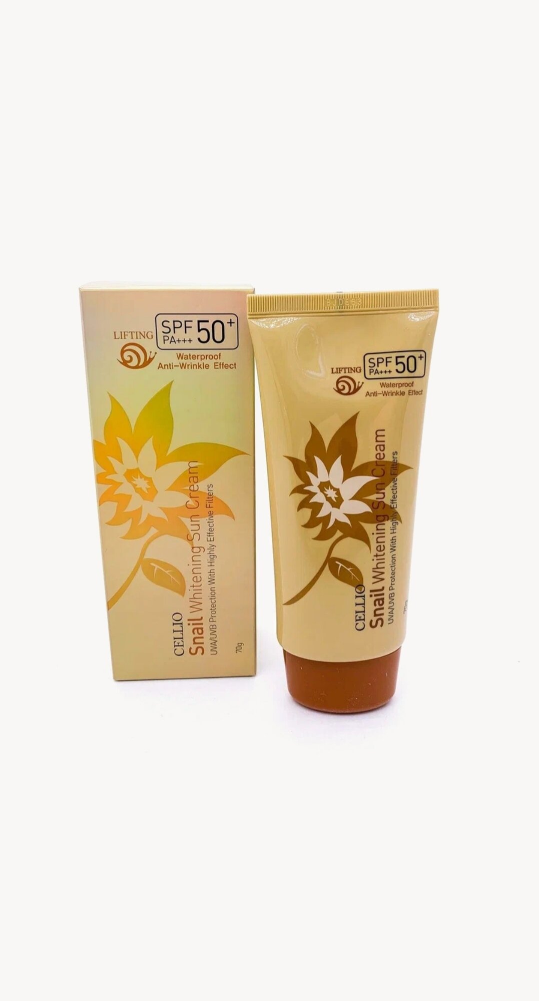 Купить Солнцезащитный крем с муцином улитки Cellio Snail Whitening Sun Cream SFP50+ PA+++, 70 г