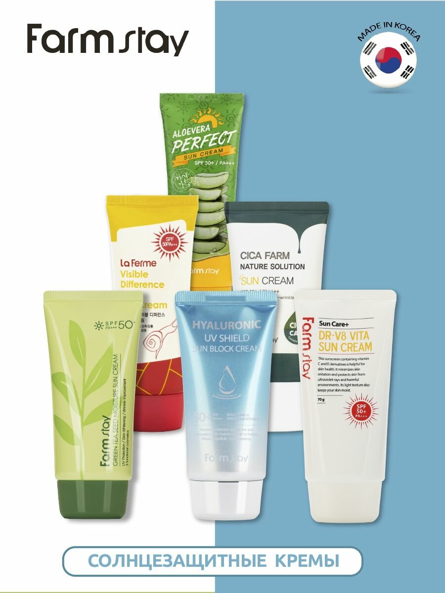 Купить FarmStay Солнцезащитный крем для ухода за кожей лица, шеи и зоны декольте с гиалуроновой кислотой SPF50+/PA+++, корейская косметика. 70г