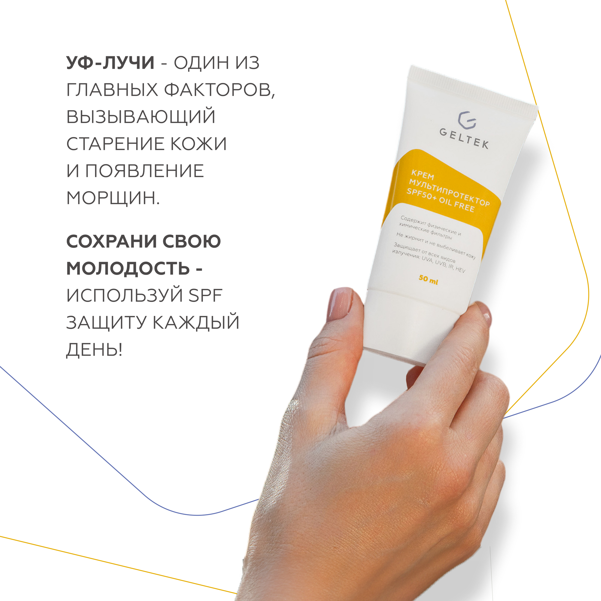Гельтек Крем Mультипротектор SPF50+ oil free, 100 гр