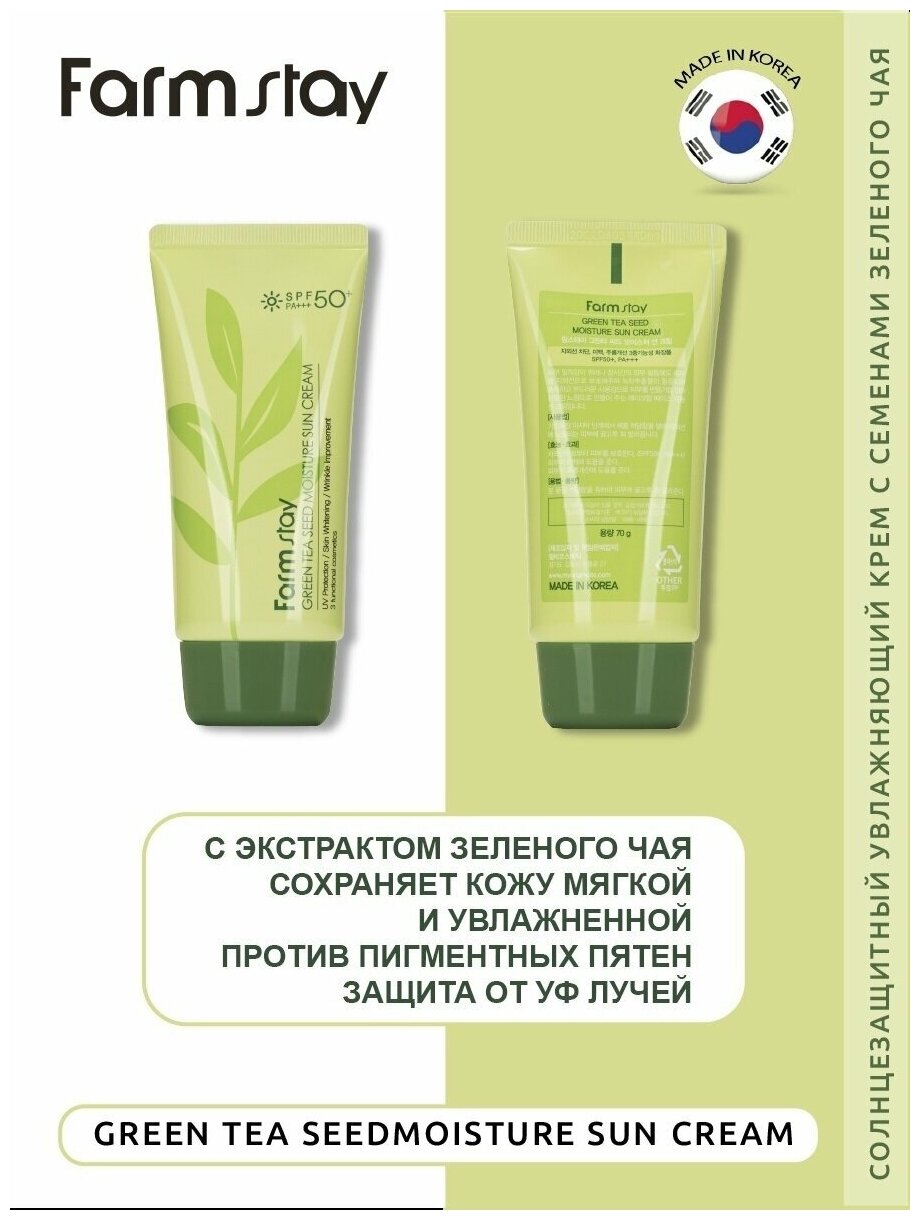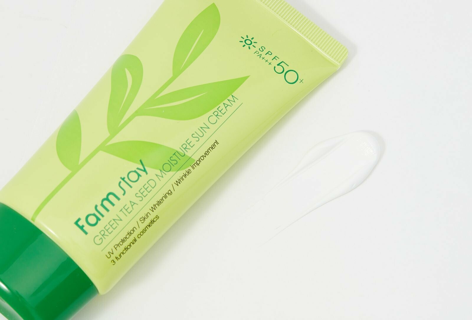Купить Увлажняющий солнцезащитный крем Farmstay с семенами зеленого чая SPF 50/PA+++, 70 г