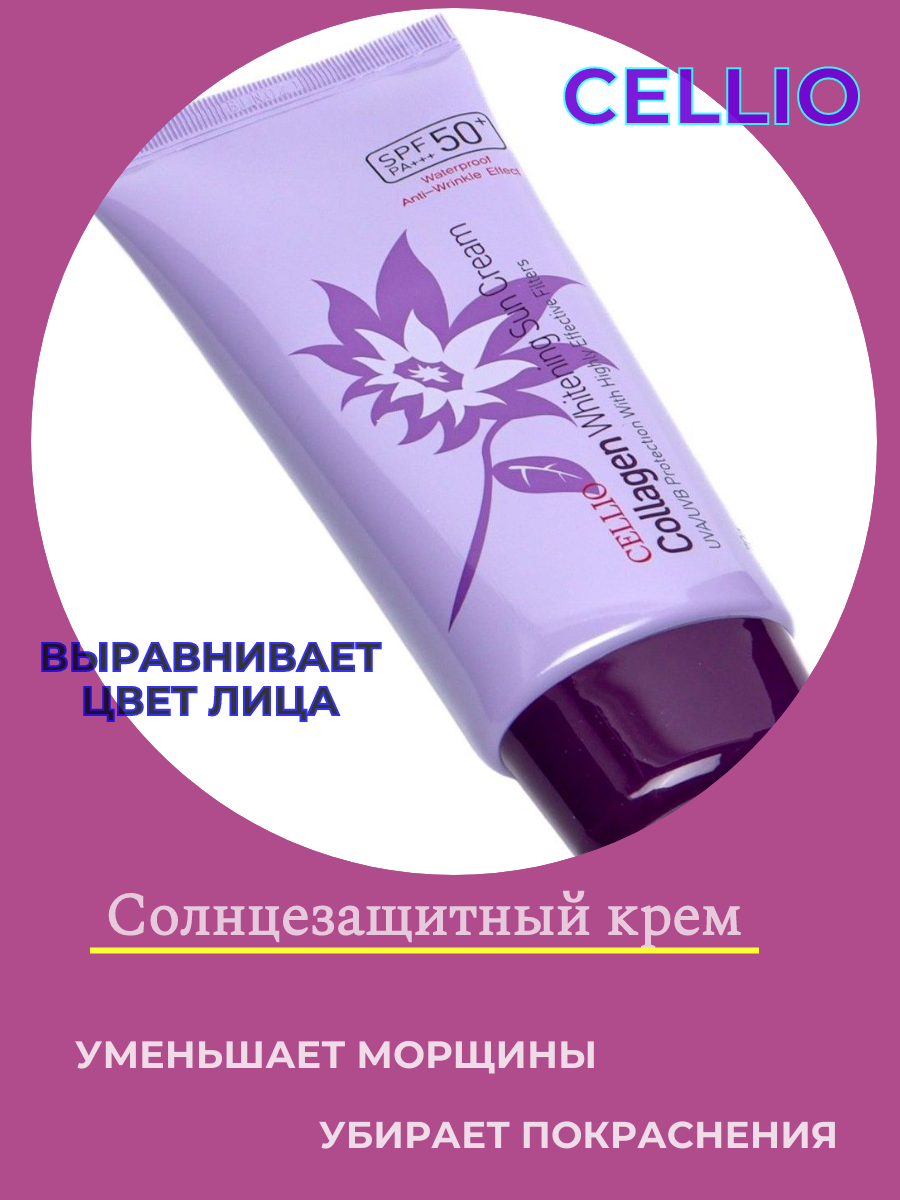 Солнцезащитный крем с коллагеном Cellio Collagen Whitening Sun Cream 70 г интересное: