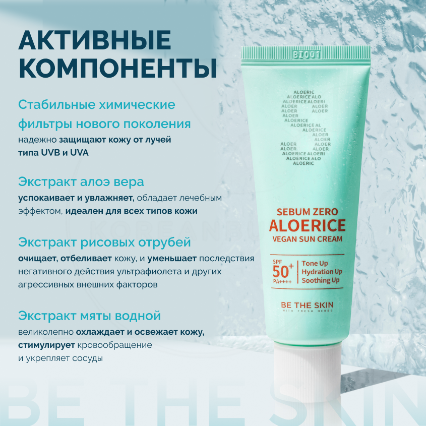 Солнцезащитный крем | Be The Skin Sebum Zero Aloerice Vegan Sun Cream 50 ml 50+, PA++++ интересное: