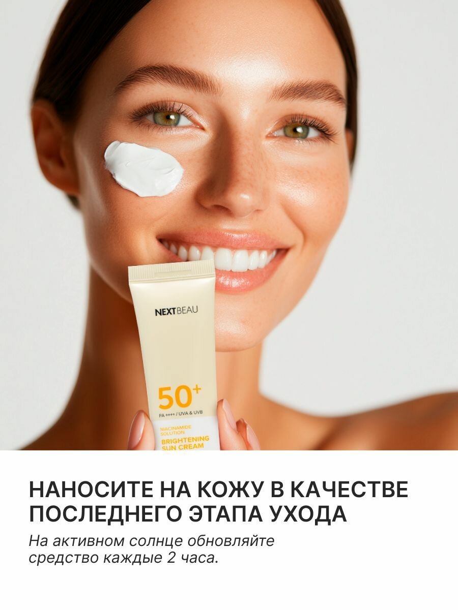 NEXTBEAU Выравнивающий солнцезащитный крем с ниацинамидом SPF 50+/PA+++, 55мл интересное: