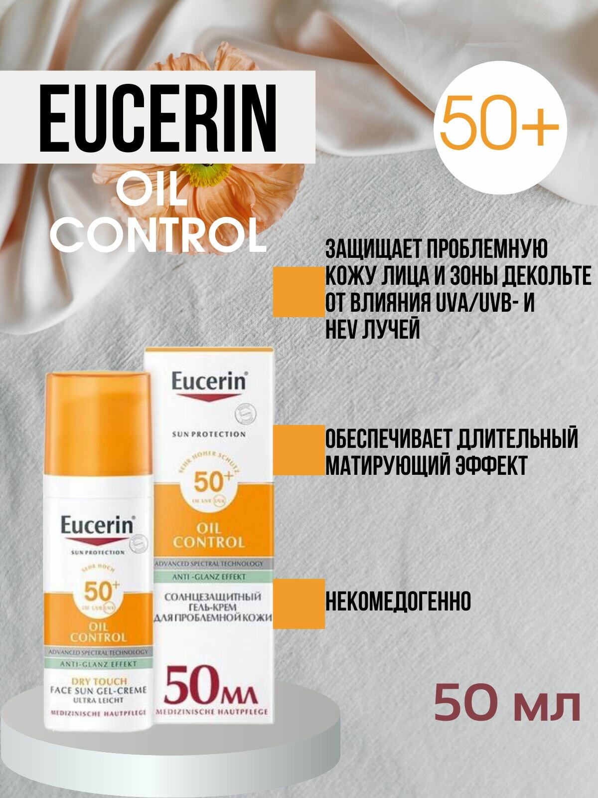 Eucerin/Солнцезащитный гель-крем для проблемной кожи лица SPF 50+, 50 мл