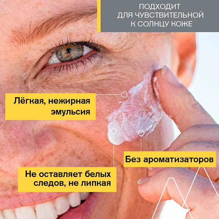 | Способ применения | наносите эмульсию на кожу лица и тела перед выходом на солнце. Применяйте достаточное количество, чтобы обеспечить необходимый уровень защиты ( два нажатия для лица, шеи и верхней части груди). Повторяйте нанесение через 2 часа, после вытирания полотенцем, плавания или потоотделения |