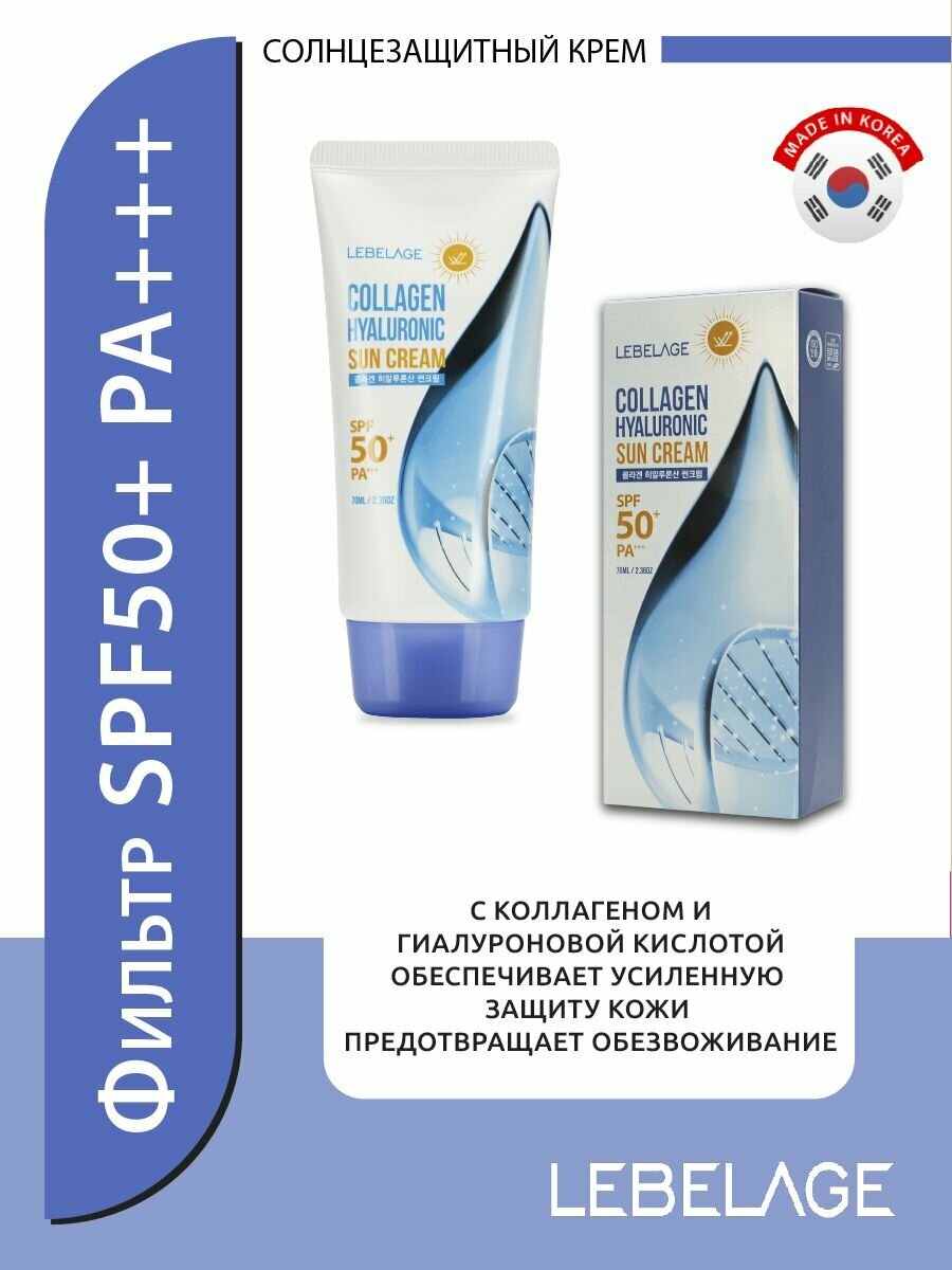 LEBELAGE Солнцезащитный крем для ухода за кожей лица, шеи и зоны декольте, против морщин с коллагеном и гиалуроновой кислотой, корейская косметика. 70мл интересное: