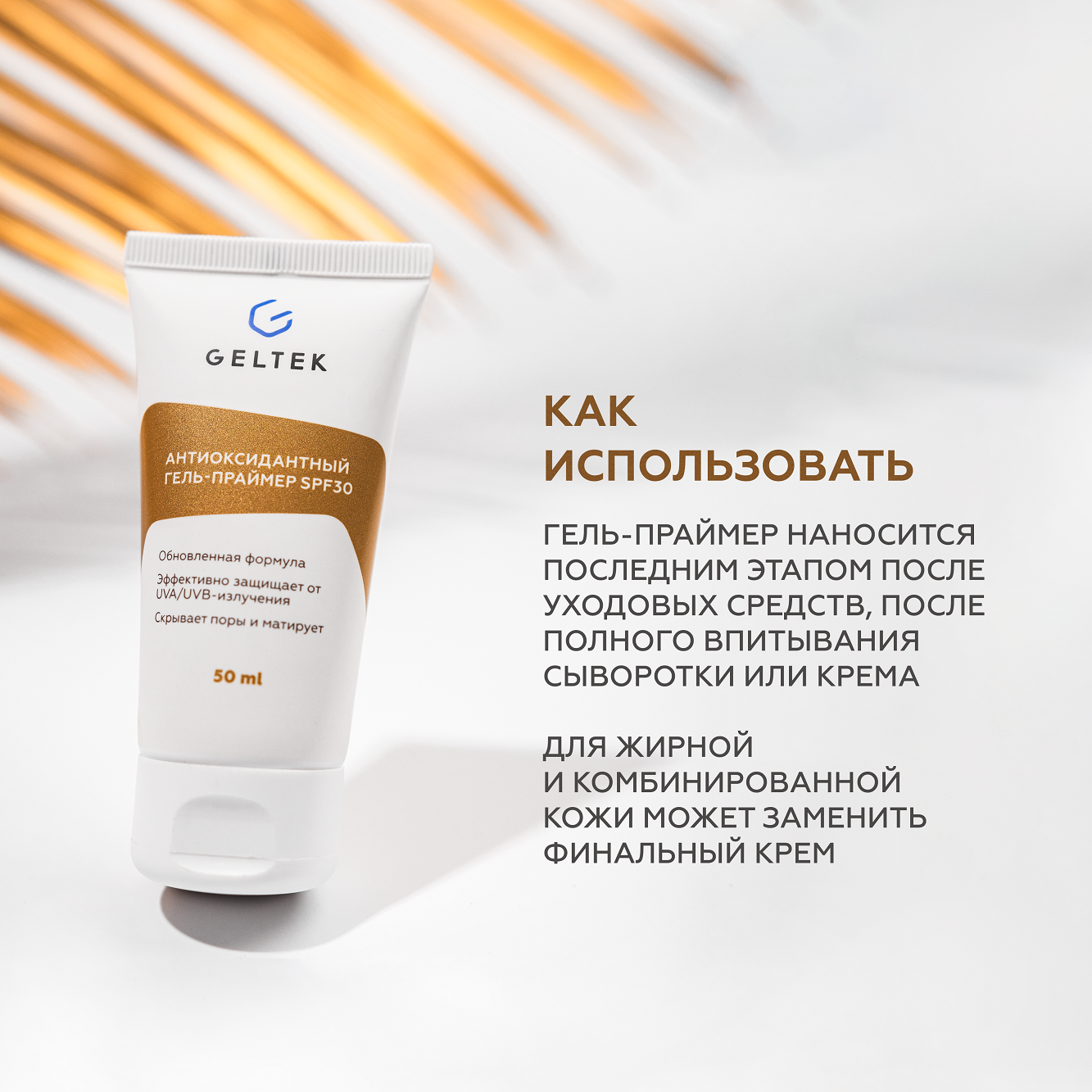 Гельтек Солнцезащитный гель праймер для лица SPF 30 антиоксидантный, основа под макияж, 50 мл интересное: