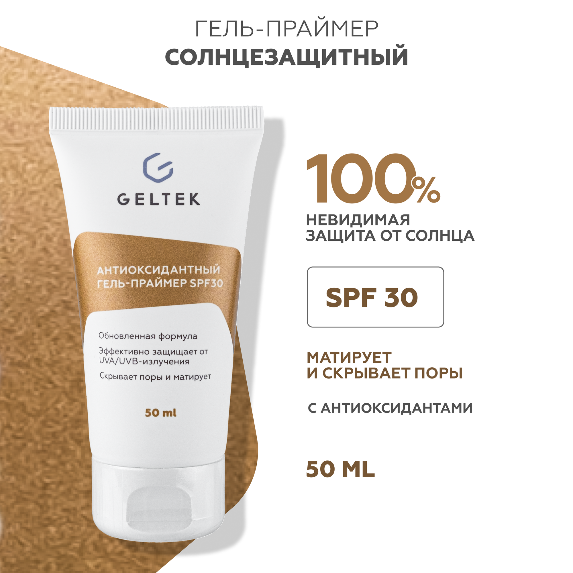Купить Гельтек Солнцезащитный гель праймер для лица SPF 30 антиоксидантный, основа под макияж, 50 мл