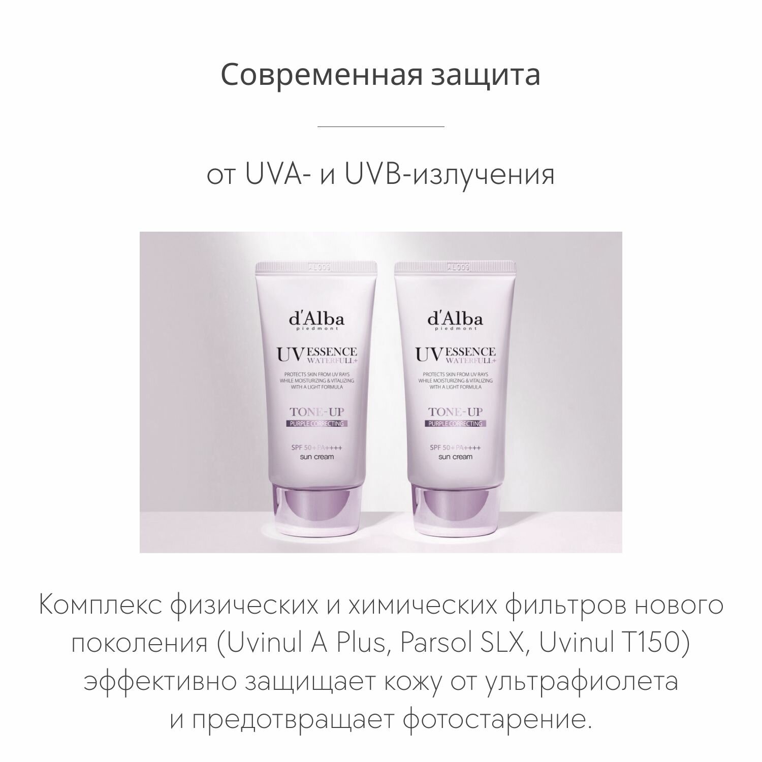 d'Alba Солнцезащитный крем для осветления тона Waterfull Tone-Up Sun Cream (Фиолетовый) 50мл интересное:
