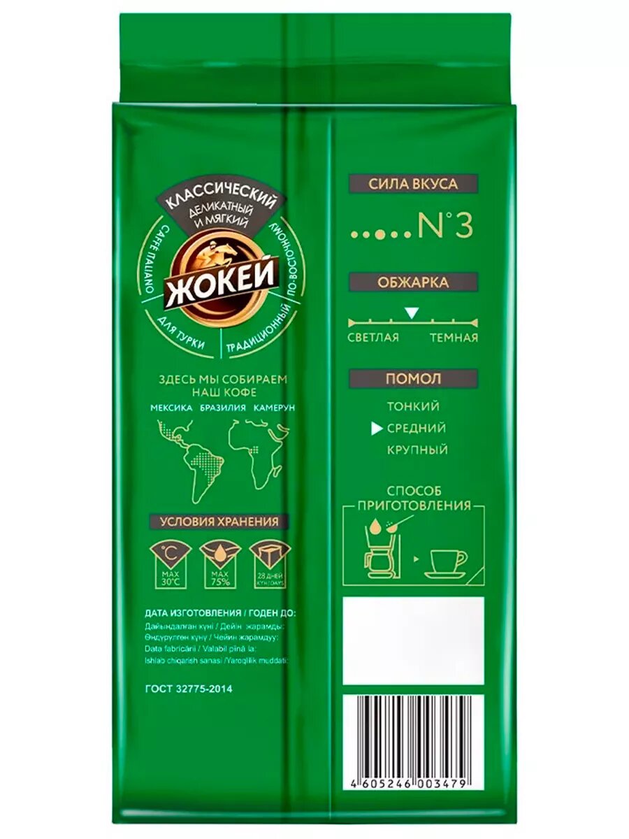 Жокей Классический Кофе молотый арабика в вакуумной упаковке 100 г