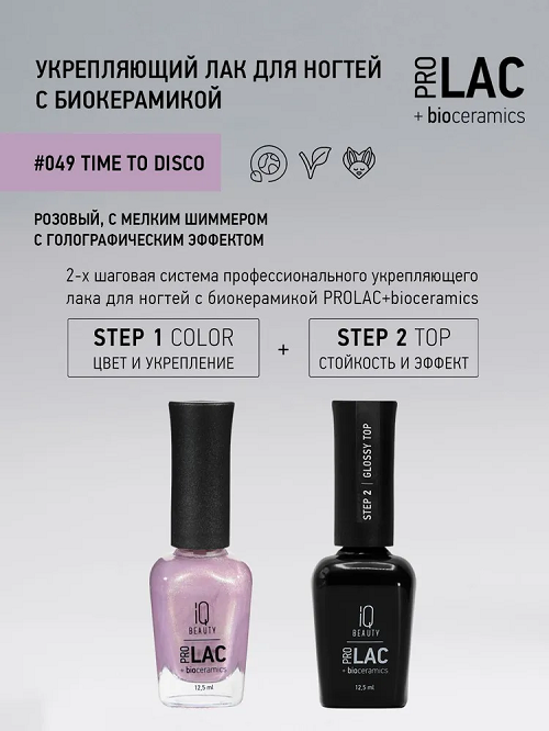 IQ BEAUTY Лак для ногтей с биокерамикой Nail Polish Prolac +Bioceramic укрепляющий, 12,5 мл, 049