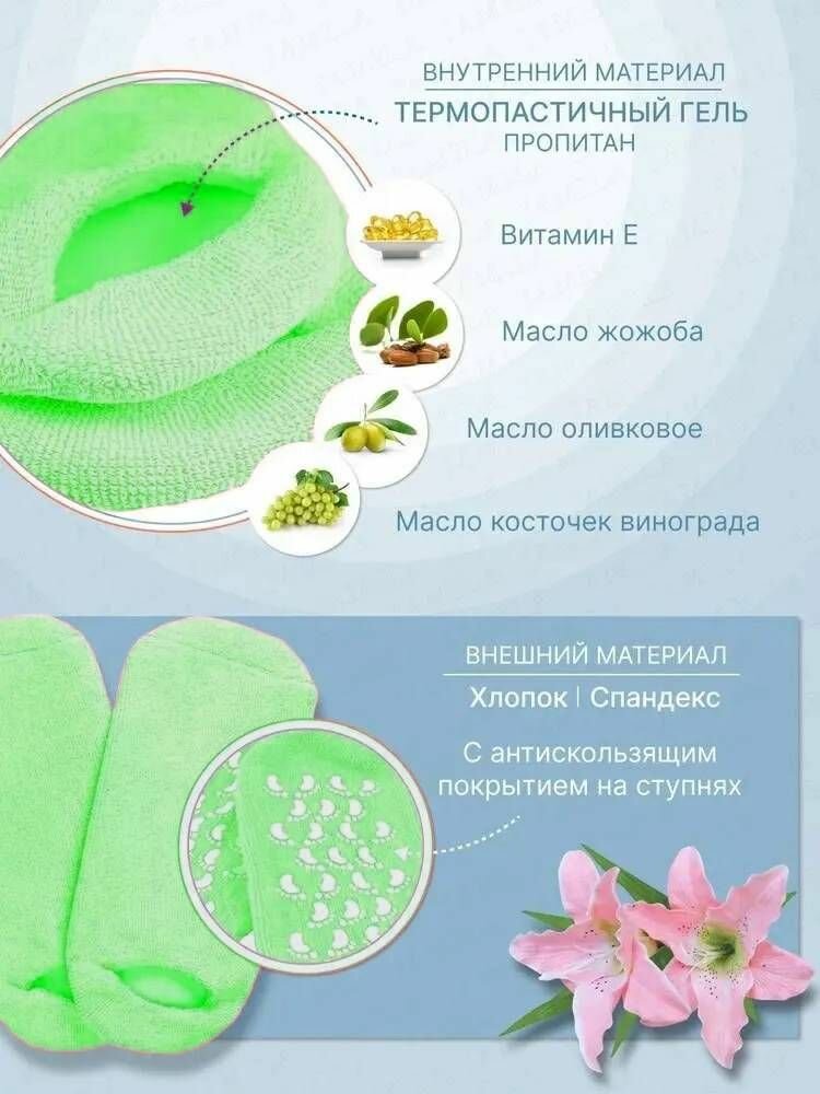 Косметические увлажняющие спа-носочки гелевые многоразовые, цвет салатовый интересное:
