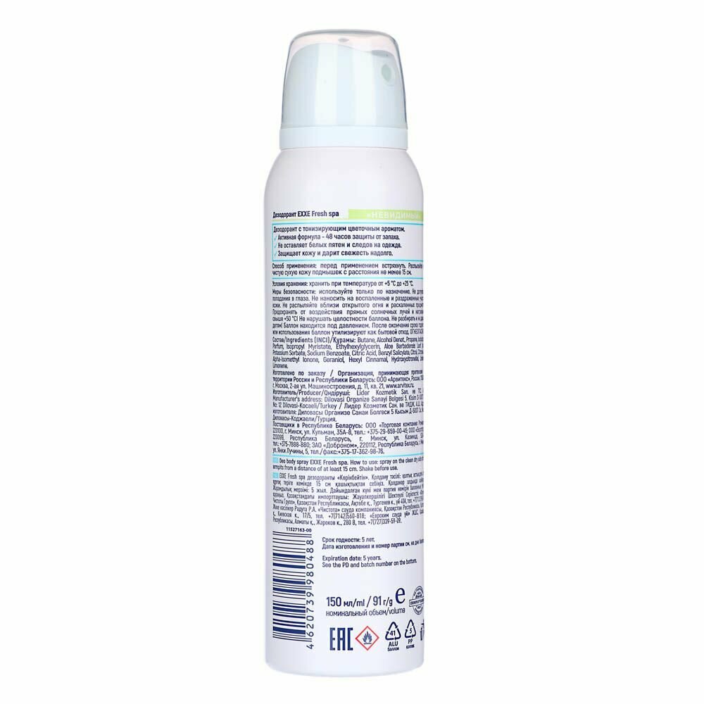 Дезодорант женский EXXE Fresh SPA Невидимый спрей, 150 мл интересное: