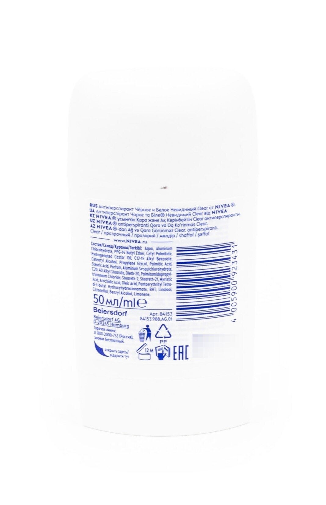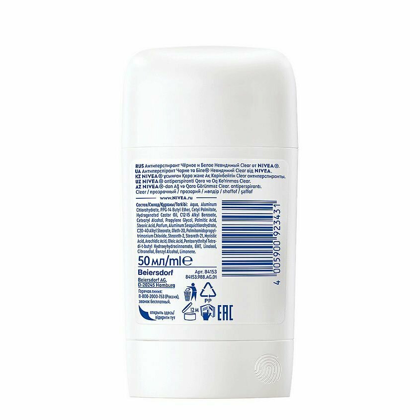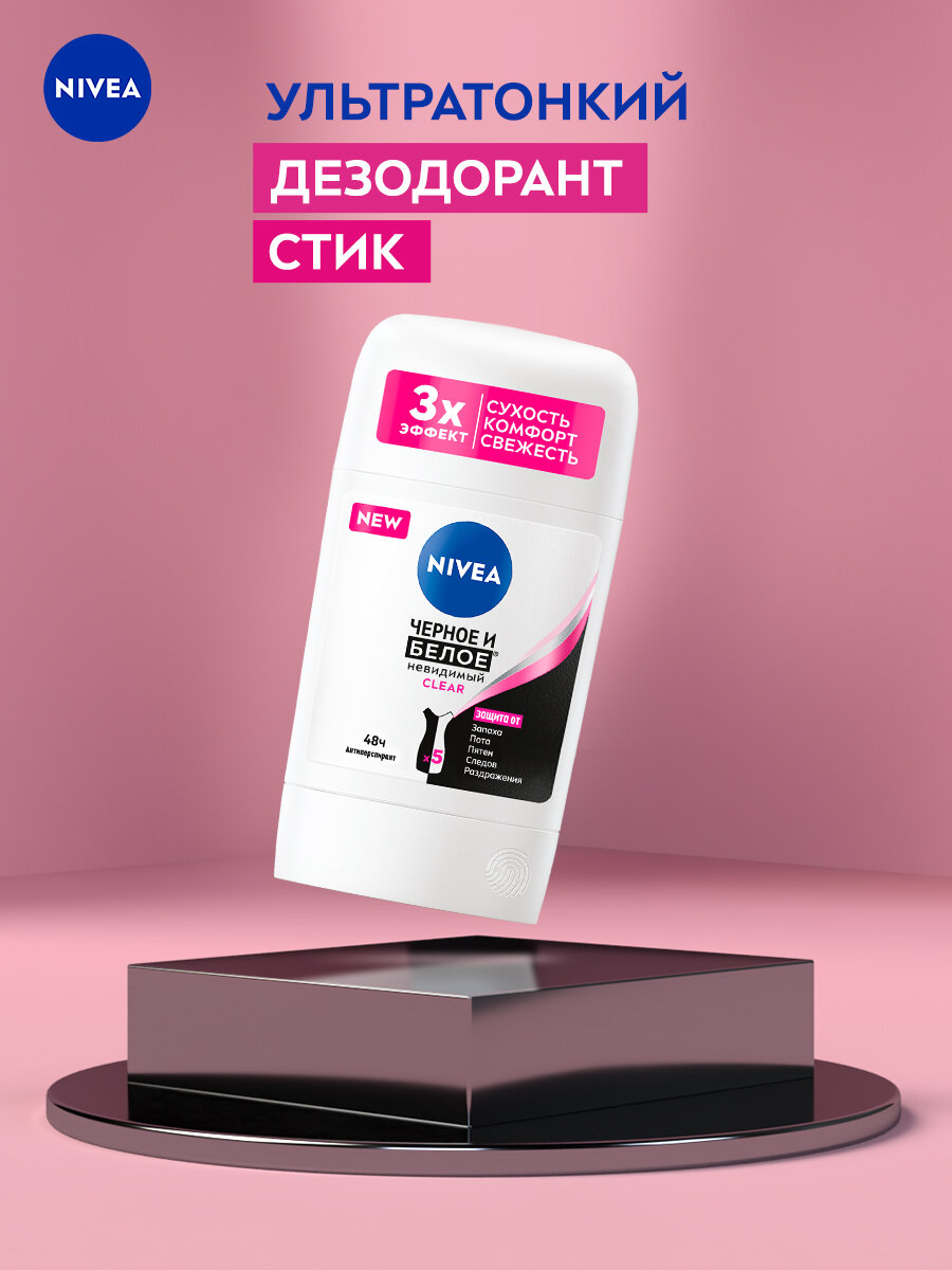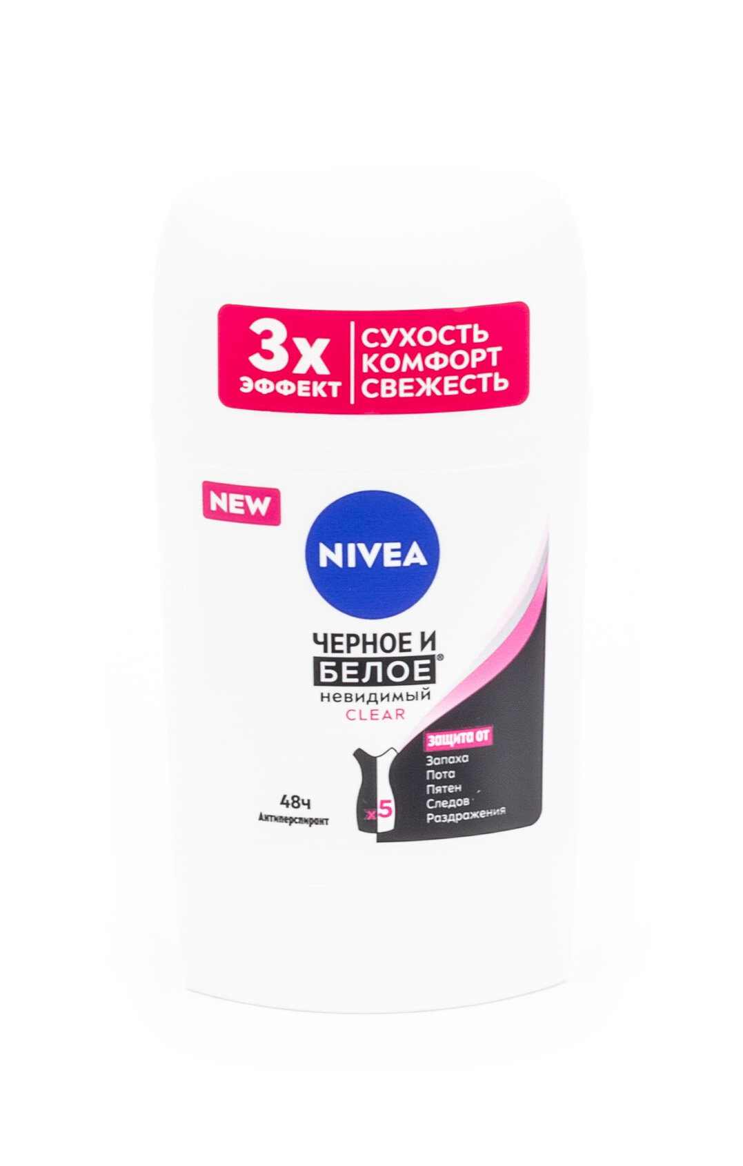 Дезодорант-Антиперспирант стик NIVEA "Черное и Белое Невидимый Clear", 50 мл. интересное: