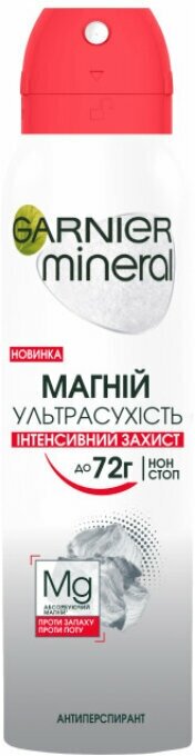 Garnier Mineral дезодорант-антиперсперант спрей Эффект магния Ультрасухость, 72Ч, для женщин, 150мл