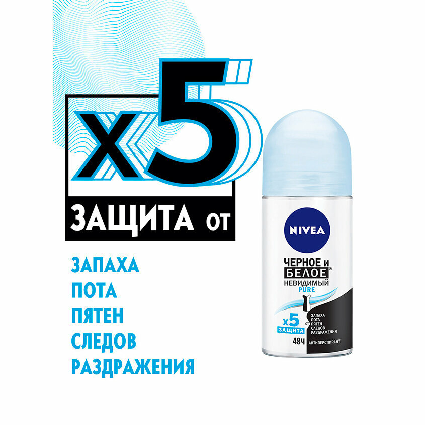 Купить Nivea Дезодорант-антиперспирант Черное и белое Pure невидимый роликовый, 50 мл
